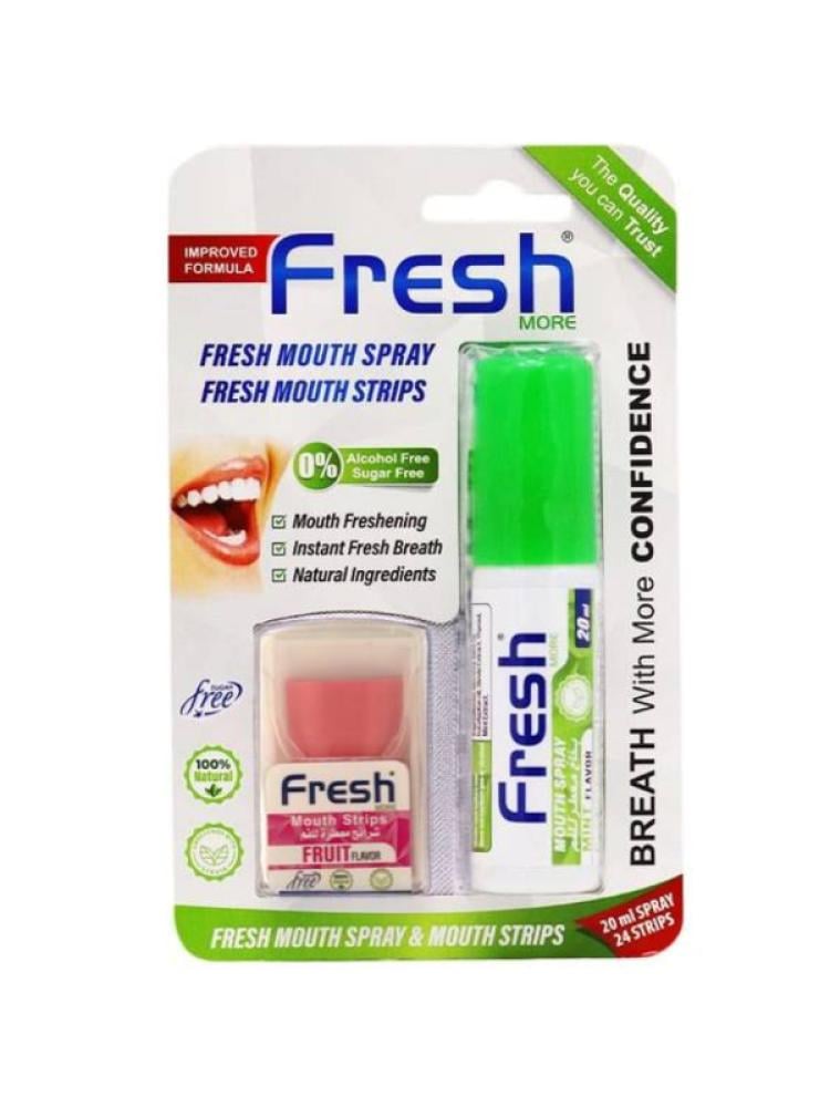 بخاخ معطر للفم بنكهة النعناع من فريش مور،20 مل + شرائح معطرة للفم