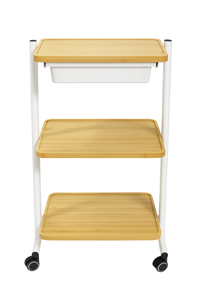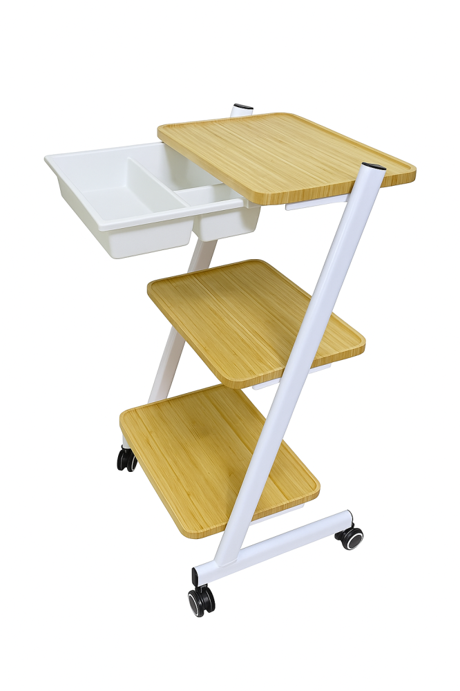 أضف لمسة من الدفء الطبيعي والكفاءة الاحترافية إلى مساحة عملك. صُمم ترولي خشب للصالونات (موديل T-029B) من صالون سيستم ليكون الحل المثالي الذي يجمع بين جمال الخشب الأنيق والتنظيم الذكي، مما يرفع من مستوى ديكور صالونك وكفاءة سير العمل في آن واحد.حيث تلتقي أناقة الخشب بمتطلبات العمل اليوميتصميم خشبي بلمسات معدنية: يمنح صالونك مظهراً دافئاً وراقياً، مع لمسات معدنية تضمن المتانة والأداء طويل الأمد.ثلاثة رفوف تخزين عملية: توفر مساحة واسعة ومنظمة لحمل جميع أدواتك ومستلزماتك، من العبوات إلى الأجهزة الصغيرة.أدراج جانبية للأدوات الدقيقة: حل ذكي لتنظيم الأدوات الصغيرة مثل الفرش والأمشاط، مما يمنع ضياعها ويجعلها في متناول يدك.حرية حركة 360 درجة: مزود بعجلات عالية الجودة تضمن تنقلاً سلساً وهادئاً في جميع أنحاء الصالون أو العيادة.هذا الترولي الأنيق هو قطعة وظيفية تعكس ذوقك الرفيع، وهو إضافة مميزة لأي مجموعة أثاث الصالون. استعرض مجموعتنا الكاملة من عربات الترولي، واجعله جزءاً من مشروع تجهيز مشاغل متكامل.اطلبه الآن واجمع بين جمال التصميم وكفاءة التنظيم في صالونك