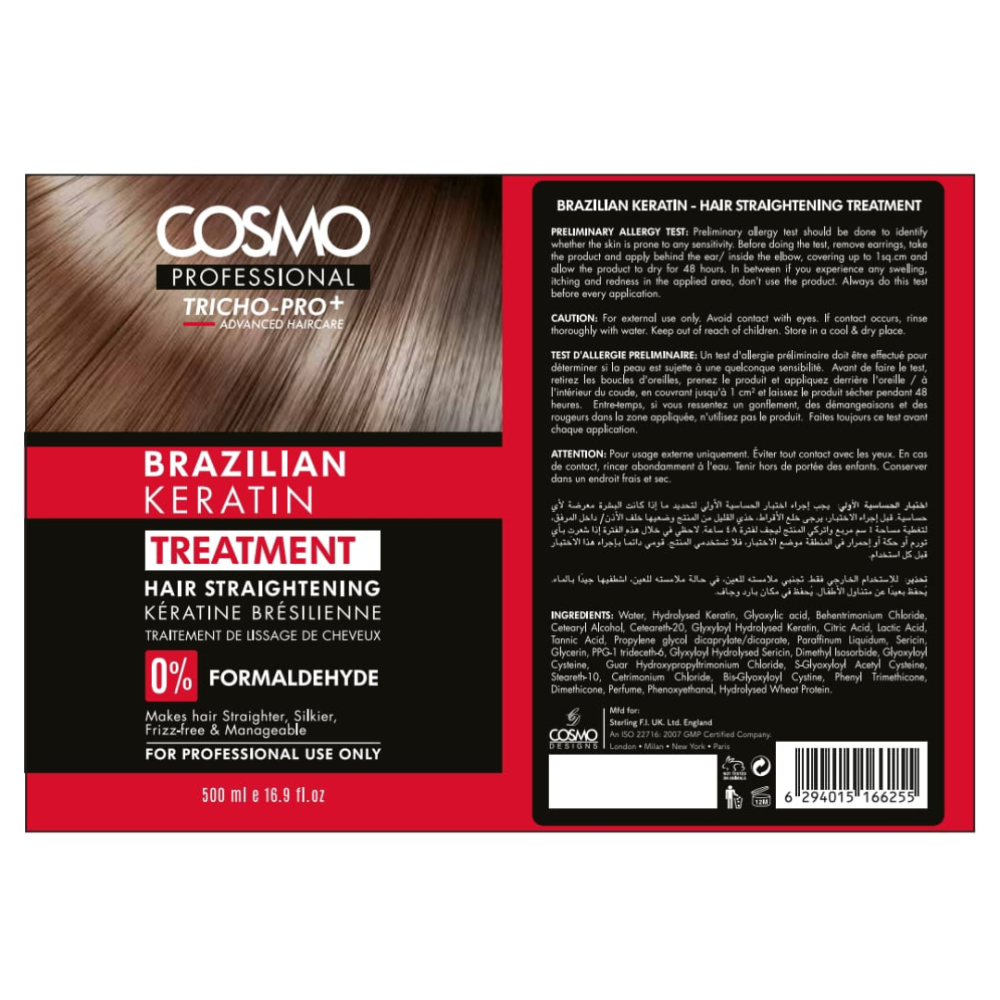 تريشو برو+ بروتين لفرد الشعر بالكيراتين البرازيلي من كوزمو بروفيشنال - 500 مل