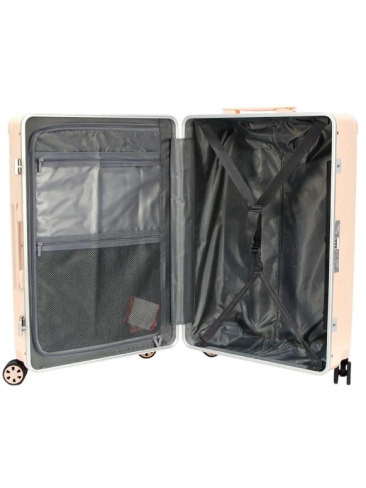أضف لمسة من الأناقة والتميز إلى رحلاتك مع حقيبة السفر المحمولة بعجلات من صالون سيستم بلون وردي جذاب. هذه الحقيبة ليست فقط قطعة عملية بل أيضاً بياناً للأناقة، حيث تجمع بين التصميم العصري والمميزات العملية التي تناسب احتياجات المسافرين العصريين.المواصفات:الماركة: صالون سيستم.الخامة: مواد عالية الجودة مقاومة للصدمات والخدوش.اللون: وردي أنيق يلفت الأنظار.الأبعاد: مدمجة ومناسبة كحقيبة يد للطائرة.العجلات: 4 عجلات دوارة بزاوية 360 درجة لتوفير تنقل سلس.المقابض:مقبض تلسكوبي مريح وسهل السحب.مقبض جانبي لخيارات حمل إضافية.التصميم الداخلي:مساحة واسعة منظمة مع أحزمة تثبيت للحفاظ على ترتيب الأغراض.جيوب شبكية بسحاب لتخزين العناصر الصغيرة بسهولة.ميزات الأمان: قفل مدمج معتمد من TSA لتوفير الحماية أثناء السفر.المميزات:تصميم أنيق وجذاب: اللون الوردي العصري يضفي لمسة من الأنوثة والأناقة على أمتعتك.سهولة الحركة: عجلات دوارة بزاوية 360 درجة تجعل التنقل سلساً ومريحاً في أي مكان.حجم مدمج مع سعة كبيرة: رغم حجمها الصغير، توفر الحقيبة مساحة داخلية كافية لجميع أغراضك الضرورية.مقاومة ومتينة: مصنوعة من مواد عالية الجودة لتحمل ظروف السفر المختلفة.خفيفة الوزن: سهولة في الحمل والتنقل دون إجهاد.حقيبة السفر المحمولة بعجلات من صالون سيستم بلونها الوردي هي الخيار المثالي لمن تبحث عن الأناقة والعملية في الوقت نفسه. استعد لرحلتك القادمة بحقيبة تجمع بين التصميم الجميل والمزايا المريحة.اطلبها الآن واستمتع بتجربة سفر أنيقة ومريحة!