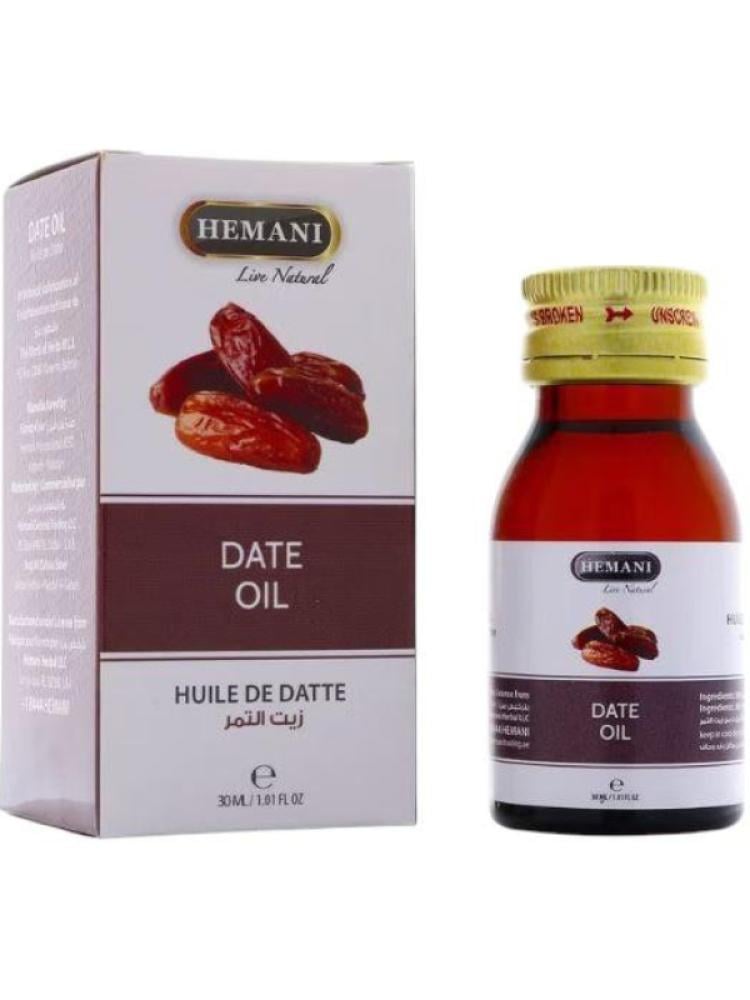 زيت التمر من هيماني، 30 مل، يُنعم البشرة ويُحسّن لونها. قد يمنع تلف الحمض النووي، ويُساعد على استقرار مستوى السكر في الدم.المزايا:يُهيئ بيئة مثالية لنمو الشعر عن طريق إزالة القشرة وحب الشباب.يمنع تلف الكلى والكبد، ويحمي خلايا الجسم من أضرار الإجهاد التأكسدي.يُغذي بصيلات الشعر، ويُعزز نمو الشعر الصحي والحفاظ عليه.يحتوي على كميات كبيرة من الأحماض الأمينية الأساسية التي تُساعد على استعادة وظائف الخلايا ونموها.طريقة الاستخدام:يمكن استخدام زيت التمر من هيماني موضعيًا أو عن طريق الفم.