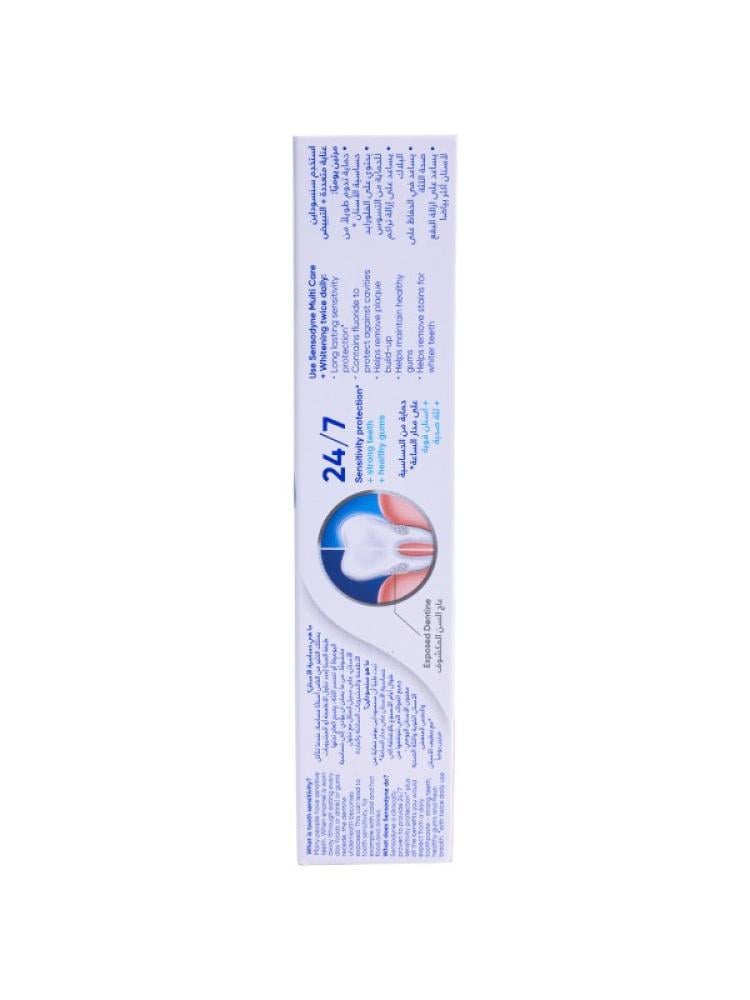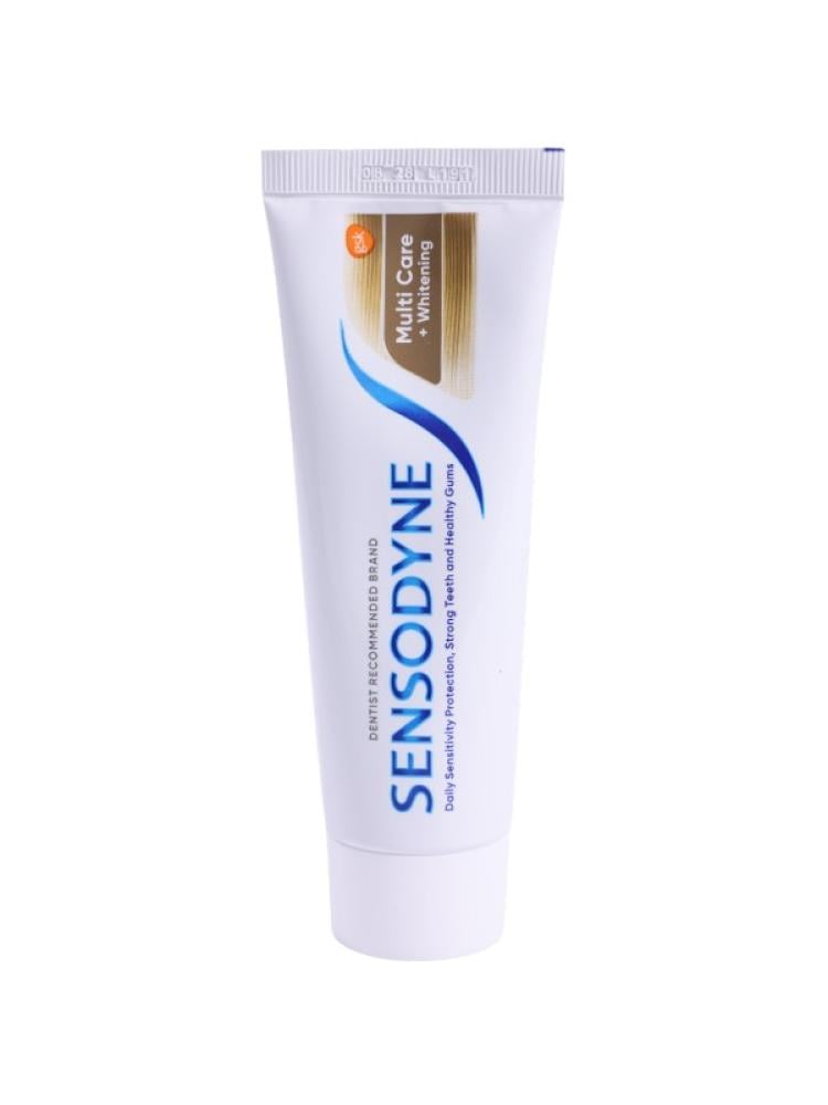 - عناية شاملة (Multi Care): لا يكتفي بالتبييض والحساسية، بل يحارب معجون أسنان سنسوداين تبييض تراكم البلاك (الجير)، يقوي اللثة، ويحمي من التسوس بفضل الفلورايد.