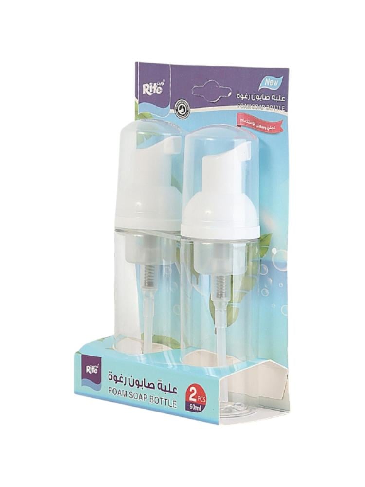 طقم فوارغ رغوة الصابون من رايت يضيف لمسة ابتكار ويوفر تنظيفًا فعالًا ورغوة كثيفة.المزايا:✅ يحول الصابون السائل إلى رغوة غنية لتوفير المنتج.✅ عبوتان بسعة 60 مل لكل منهما، مزوّدتان بمضخة رغوية عالية الجودة.✅ شفافة وسهلة التعبئة لإعادة الاستخدام.✅ مثالية للسفر ومتعددة الاستخدامات (صابون، غسول وجه، شامبو). استمتعي بتنظيف اقتصادي ورفاهي مع طقم فوارغ رغوة الصابون من رايت – الحل الذكي لرغوة مثالية!
