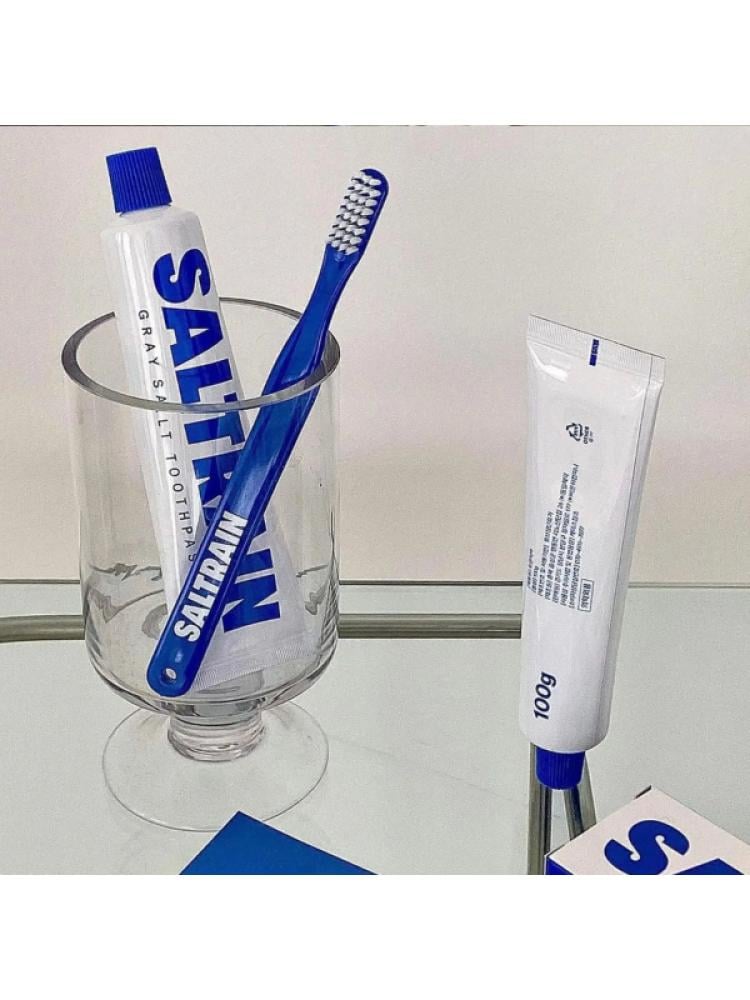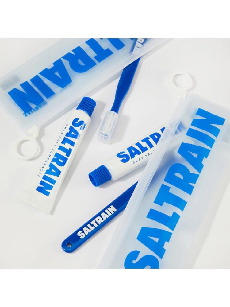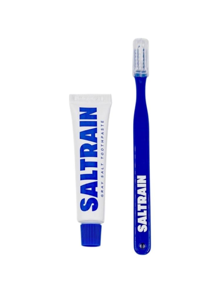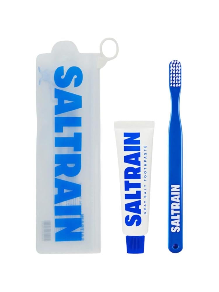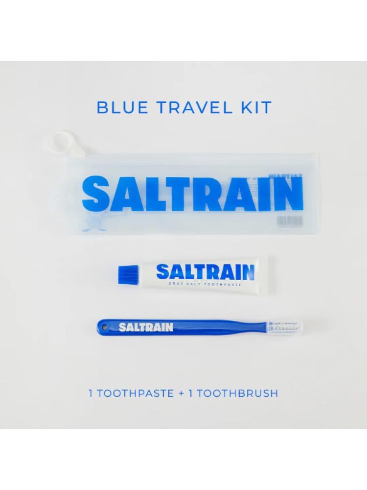طقم للسفر معجون بملح رمادي طبيعي مع فرشاة أسنان من سالترين ، 30 جرام / أزرق