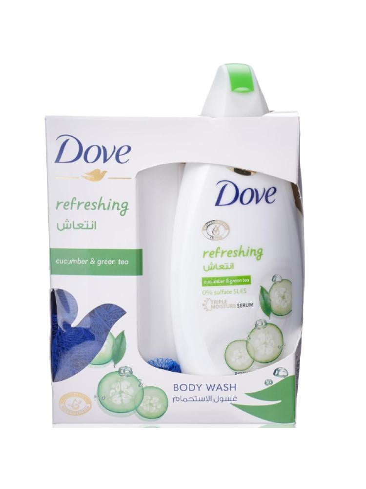 اليك غسول الاستحمام بالخيار والشاي الاخضر مع ليفة من دوف: بصيغته الخفيفة والمنعشة، يمنحك هذا الغسول تجربة استحمام فريدة من نوعها.