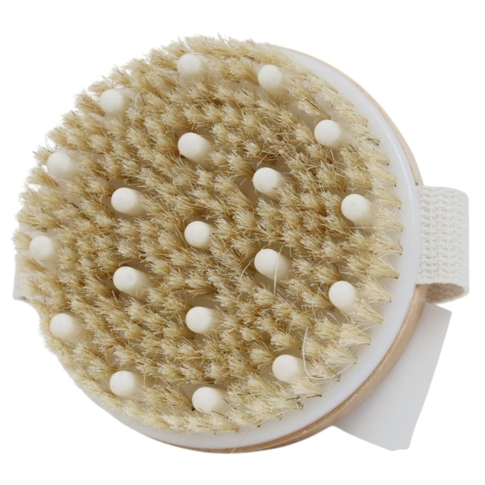 تُعد فرشاة التقشير للجسم من بيوتي سيستم أداة مثالية لتنظيف البشرة الرطب والجاف، حيث توفر تقشيرًا لطيفًا لبشرة أكثر نعومة وإشراقًا.المميزات:بشرة ناعمة ولامعة: تتميز الفرشاة بشعيرات ناعمة ومتينة تحفز الدورة الدموية، مما يساعد على تجديد الخلايا وإنتاج المزيد من الكولاجين، لتمنحكِ بشرة لامعة ونظيفة ومقشرة.طبيعية تمامًا: مصنوعة من شعيرات طبيعية ومقبض خشبي حقيقي، بالإضافة إلى حزام من قماش الكانفاس، مما يوفر لكِ شعورًا طبيعيًا ومريحًا أثناء الاستخدام.سهولة التعليق: تصميم الفرشاة المستدير بحجم كف اليد يتناسب مع يدكِ بشكل مثالي، بينما يوفر الحزام المصنوع من الكانفاس الطبيعي سهولة التحكم في كل من الظروف الجافة والرطبة.تدليك لطيف: تحتوي الفرشاة على عقد تدليك ناعمة مخبأة بين الشعيرات، تعمل على تهدئة العضلات أثناء التدليك وتمنعكِ من الضغط بشدة، مما يوفر تجربة استرخاء مميزة.سهولة الحمل: خفيفة الوزن وسهلة التعبئة، مما يعني أنه بإمكانكِ أخذها معكِ عند السفر دون أي عناء.الفوائد:تنظيف البشرة بعمق: تساعد الشعيرات الطبيعية على إزالة خلايا الجلد الميتة والشوائب، مما يترك البشرة ناعمة ونظيفة.تحفيز الدورة الدموية: الجانب المزوّد بالنتوءات المطاطية يعزز تدفق الدم ويحفز الجهاز الليمفاوي، مما يساعد على تحسين صحة الجلد.تقليل الإجهاد: توفر تجربة تدليك مريحة تساعد على الاسترخاء وتخفيف التوتر.تحسين نعومة البشرة: الاستخدام المنتظم يساهم في الحصول على بشرة أكثر نعومة وحيوية. فرشاة التقشير للجسم من بيوتي سيستم هي أداة مثالية للعناية بالبشرة بفعالية وسهولة. بفضل فوائدها الصحية ومميزاتها المتعددة، تعتبر خيارًا رائعًا لمن يسعى للحصول على تجربة تنظيف وتدليك متكاملة. إنها إضافة بسيطة لكنها تحدث فرقًا كبيرًا في روتينك اليومي.
