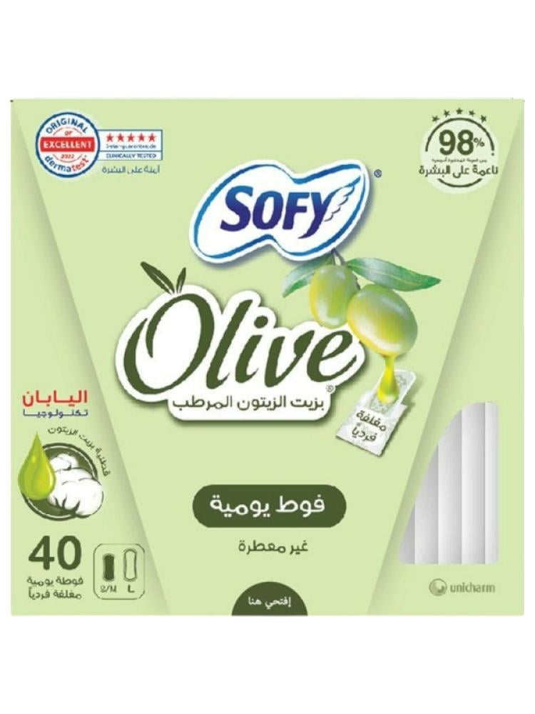 فوط يومية ناعمة بزيت الزيتون المرطب خالية من العطور من سوفي - 40 فوطة