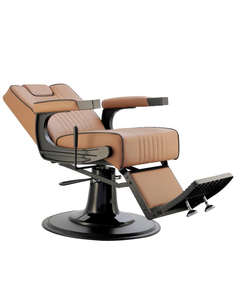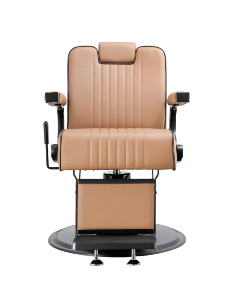 كرسي حلاقة رجالي فاخر مصمم خصيصًا لتلبية احتياجات صالونات الحلاقة الحديثة. يتميز بلون كابتشينو أنيق وهيكل معدني أسود يعكس الفخامة والمتانة. يوفر الكرس...