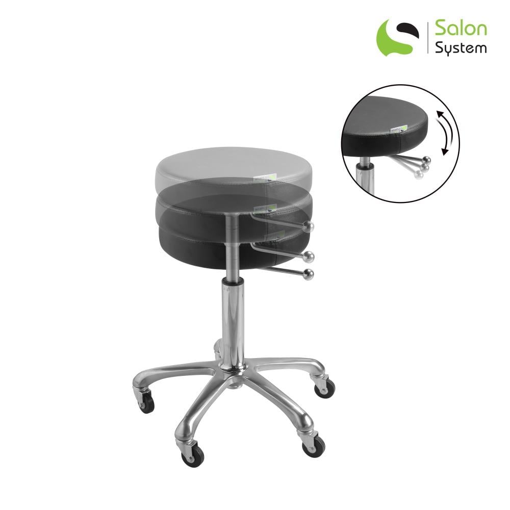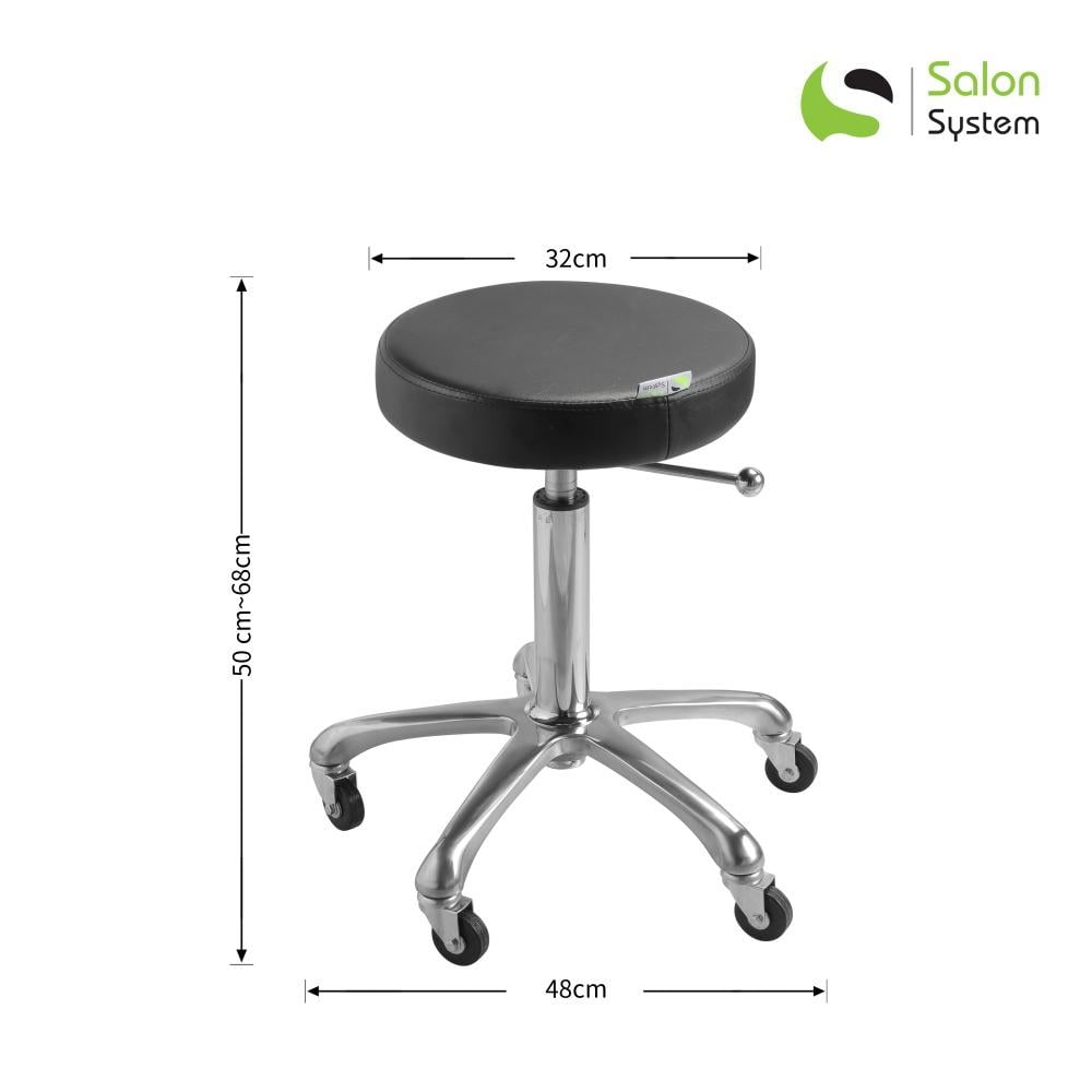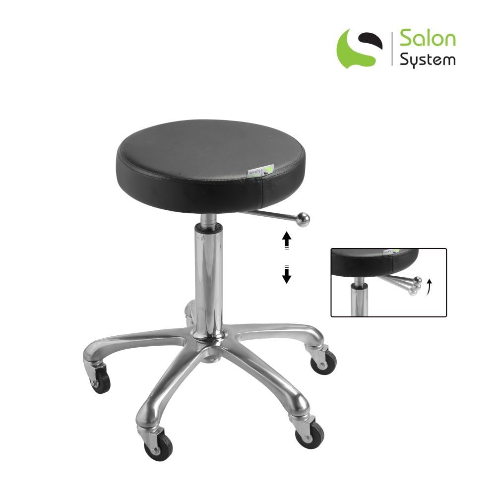 شغل الصالون ما فيه جلوس وراحة. أنتِ وفريقك في حركة مستمرة بين الزباين والمحطات. تحتاجون كرسي ما يعيقكم، كرسي يكون خفيف وسريع ويتحرك معكم بكل سهولة. هذا الكرسي الدائري من صالون سيستم مصمم بالضبط لهذا الغرض.حرية حركة بلا حدودتصميمه الدائري بدون ظهر هو ميزة أساسية للمحترفين. يسمح لك بالالتفاف والتحرك في كل الاتجاهات بحرية تامة، بدون أي عائق. مثالي لمصففة الشعر اللي تحتاج تدور حول الزبونة، أو لخبيرة الأظافر اللي تحتاج تغير وضعيتها باستمرار.كفاءة وسرعة في كل تفصيلكل جزء في هذا الكرسي مصمم لزيادة سرعتك في الشغل. القاعدة المعدنية مزودة بعجلات ناعمة تخليك تتحركين في الصالون بدون مجهود، وآلية تعديل الارتفاع سهلة وسريعة عشان توصلين للمستوى المثالي لشغلك في ثواني.جودة تتحمل الحركةرغم بساطته، هذا الكرسي مصنوع بجودة عالية من صالون سيستم ليتحمل الاستخدام اليومي المكثف. المقعد المبطن بالجلد مريح ويتحمل، والقاعدة المعدنية قوية وتضمن استقرار تام. هو أداة عمل موثوقة تعتمدين عليها كل يوم.المواصفاتالعلامة التجارية: صالون سيستمالتصميم: دائري بدون ظهر، متحرك على عجلات.اللون: أسود.المواد: مقعد جلد صناعي، قاعدة معدنية.الميزات: ارتفاع قابل للتعديل، دوران 360 درجة، خفيف الوزن.هذا الكرسي هو الأداة المثالية لفريق العمل النشيط، ويعتبر إضافة أساسية لأي مشروع تجهيز مشاغل ناجح. شوفي تشكيلتنا الكاملة من أثاث الصالون و كراسي صالون نسائي.امنحي فريقك الحرية والكفاءة اللي يحتاجونها. اطلبي الكرسي الدائري المتحرك اليوم.