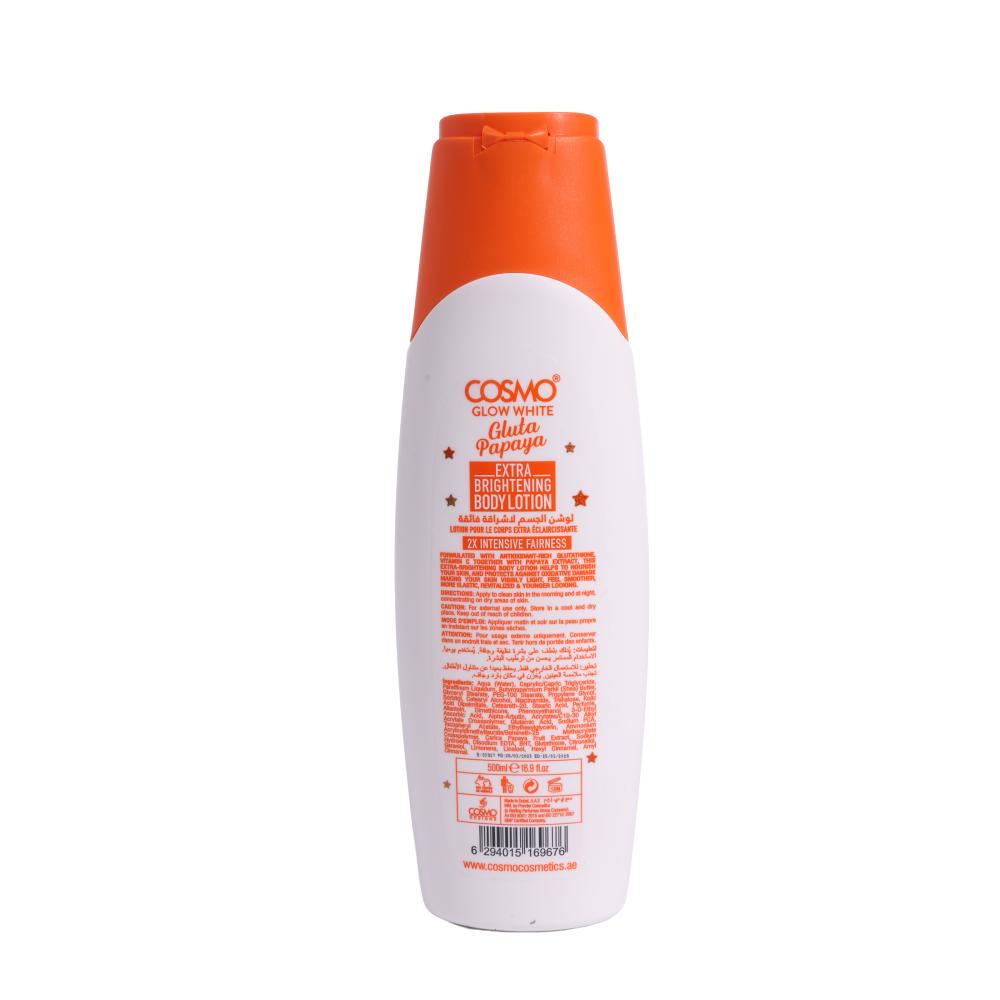 لوشن الجسم جلو وايت لاشراقة فائقة بالجلوتاثيون ومستخلص البابايا من كوزمو ، 500 مل