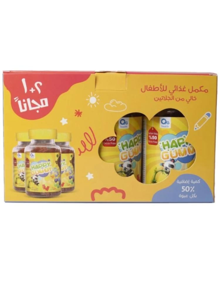 اجعلي وجبة طفلك أكثر متعة وتغذية مع هابي جامي مكمل غذائي للأطفال خالي من الجلاتين 2+1 مجاناً، هذه الحلوى اللذيذة على شكل دببة مليئة بالفيتامينات والمع...