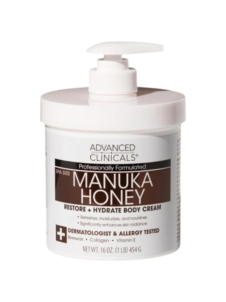 دلّلي بشرتك مع كريم الجسم الفاخر Manuka Honey Restore + Hydrate Body Cream، المصمم بتركيبة احترافية ليوفر ترطيباً عميقاً وتجديداً مثالياً، ويترك بشرتك أكثر نعومة، صحة، وإشراقاً.مميزات وفوائد الكريم:ترطيب وتجديد مكثف: بفضل العسل النيوزلندي (Manuka Honey) المعروف بخصائصه المرطبة والمغذية.يعزز إشراقة البشرة: يمنح البشرة مظهراً صحياً ومضيئاً.يغذي ويحمي البشرة: يحتوي على مزيج فعّال من المكونات الغنية مثل الكولاجين، شمع العسل، وفيتامين E.يحسن مرونة البشرة: الكولاجين يساعد على دعم البشرة لمظهر أكثر شباباً.آمن وفعال: مختبر من قبل أطباء الجلدية ومناسب لمعظم أنواع البشرة.حجم سبا (454 جم): يمنحك تجربة عناية فاخرة تدوم طويلاً.المكونات الأساسية:عسل المانوكا: يرطب ويجدد البشرة بعمق.شمع العسل: يحمي البشرة ويحافظ على ترطيبها الطبيعي.الكولاجين: يعزز مرونة الجلد ويمنحه مظهراً مشدوداً.فيتامين E: مضاد أكسدة قوي يحمي ويغذي البشرة.طريقة الاستخدام:ضعي كمية مناسبة من الكريم على بشرتك النظيفة يومياً، ودلّكيها بلطف بحركات دائرية حتى يمتصه الجلد بالكامل. مناسب للاستخدام على الجسم واليدين.امنحي بشرتك العناية التي تستحقها مع كريم Advanced Clinicals Manuka Honey الغني بالعسل الطبيعي والمكونات المغذية، لتنعمي ببشرة أكثر ترطيباً، إشراقة، ونعومة. اطلبيه الآن من دار الأميرات لتستمتعي بتجربة عناية لا مثيل لها.