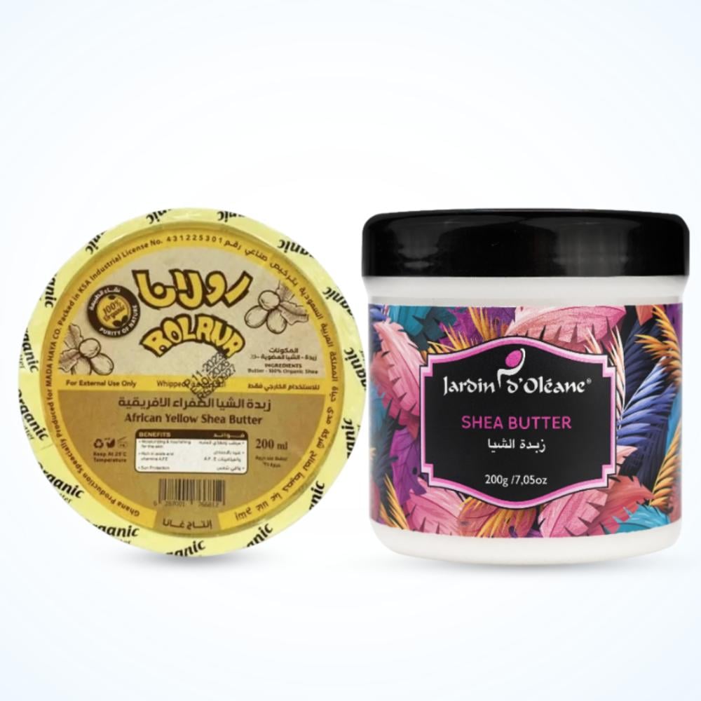 مجموعة الترطيب الفائق بزبدة الشيا استمتعي بتجربة عناية فاخرة ومضاعفة مع هذه المجموعة الفريدة، التي تجمع بين قوة زبدة الشيا الصفراء الأفريقية وزبدة الشيا البيضاء.مزيج مثالي لتغذية وترطيب بشرتك وشعرك بعمق، ومقاومة الجفاف بفعالية لا مثيل لها.لماذا تختارين هذه المجموعة؟ترطيب مكثف ومضاعف: تحصلين على فوائد نوعين من زبدة الشيا لضمان ترطيب عميق يدوم طويلاً للبشرة شديدة الجفاف.تغذية فائقة: تعمل على تغذية البشرة والشعر بالفيتامينات والأحماض الدهنية الأساسية، مما يمنحها نعومة وحيوية.عناية شاملة: مثالية للاستخدام على الجسم، اليدين، الأقدام، وحتى كقناع مغذٍ للشعر. اختاري مجموعة زبدة الشيا الأفريقية والمغربية لتنعمي بترطيب فائق، تغذية غنية، وعناية شاملة من الطبيعة.