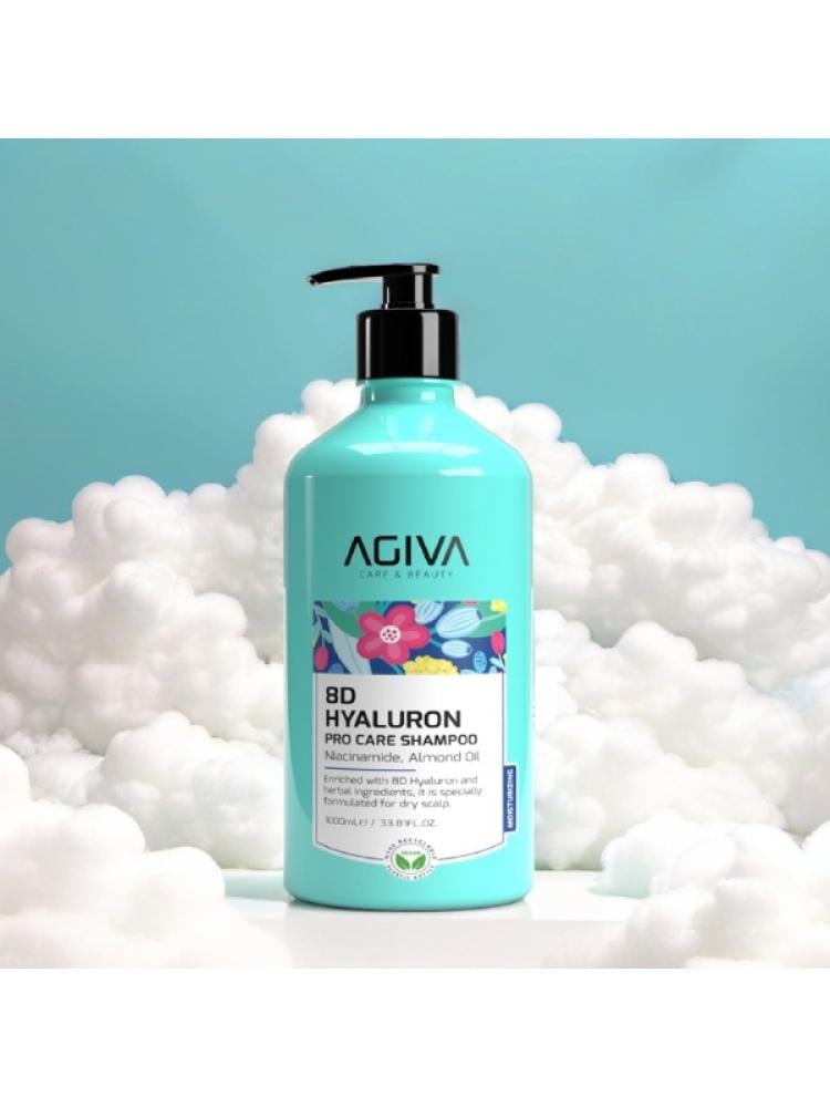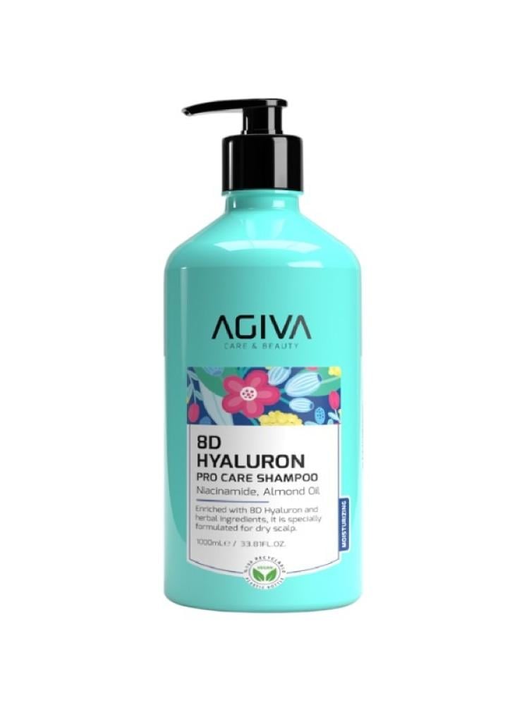 - يأتي شامبو برو كير 8D هيالورون بالنياسيناميد من أجيفا بحجم اقتصادي كبير (1000 مل)، مثالي للاستخدام المتكرر في الصالونات أو للعائلة.