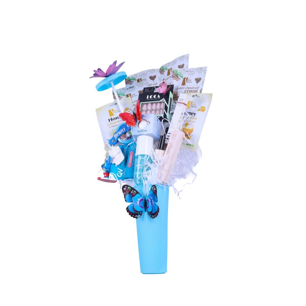 دللي نفسك مع مجموعة الجمال والعناية الشخصية التي تجمع بين الأناقة، الفعالية، والراحة لتمنحك إطلالة متكاملة وجذابة يومياً. مكونات المجموعة:العناية بالأظافر والطلاء:مناكير طلاء أظافر بولفير 666 – 11 مل: لون أنيق يبرز جمال أظافرك.مناكير طلاء أظافر بولفير 614: لون مميز يضيف لمسة جمالية لأظافرك.أظافر صناعية لصق ذاتي من لوكا – كروم وردي 2#: لتجميل أظافرك بسهولة وسرعة.مناديل مزيل طلاء الأظافر من الفا: لتنظيف الأظافر بلطف وفعالية.الشفاه:محدد شفاه من لوكا، لون موف: لتحديد شفاه مثالي بدقة وأناقة.كيوفي مرطب الشفاه المكثف – 15 جرام: يرطب شفتيك بعمق ويحميها من الجفاف.روج سائل مطفي ولامع من ميك أوفر22، رقم MUL015: لون غني يدوم طوال اليوم.العناية بالجسم والاسترخاء:كرة الاستحمام الفوارة للاسترخاء بنكهة الحلوى من سبا سيستم – 100 جرام: تمنحك استرخاءً منعشاً وتجربة استحمام ممتعة.بخاخ معطر للشعر والجسم "ميدنايت غلو" من كريسيون كرياشن – 120 مل: يمنح شعرك وجسمك عبيرًا جذابًا يدوم طويلاً.العناية بالبشرة:أقنعة سبا سيستم للوجه:قناع العسل والكولاجين (قطعتان)قناع القهوة والكولاجين (أربع قطع)الإكسسوارات واللمسات المرحة:ميدالية شخصيات كرتونية: إضافة مرحة وجذابة لمظهرك.المزايا:مجموعة متكاملة تشمل العناية بالبشرة، الشعر، الشفاه، والأظافر مع لمسات ممتعة ترفع من تجربتك اليومية.تحتوي على أقنعة غنية بالكولاجين والعسل والقهوة لتعزيز ترطيب وتجديد البشرة.منتجات عالية الجودة تضمن ثبات الألوان وفعالية العناية لفترة طويلة.سهولة الاستخدام مع أظافر صناعية لصق ذاتي وميداليات تضيف لمسة شخصية وأنيقة.مناسبة لجميع أنواع البشرة وتوفر نتائج احترافية في المنزل.تصميم أنيق يجعلها هدية رائعة ومميزة لكل من يهتم بجماله.استمتعي بجمال متكامل وإطلالة لا تُنسى مع مجموعة الجمال والعناية الشخصية التي صُممت خصيصًا لتلبية كل احتياجاتك.