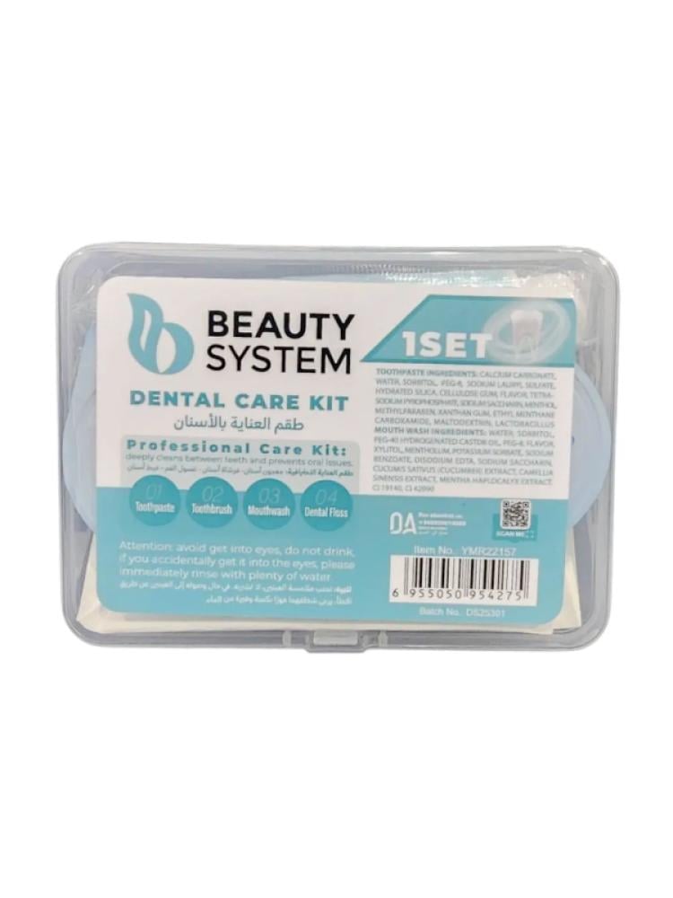 طقم عملي ومحمول مصمم لتوفير روتين عناية شامل بالفم والأسنان أثناء التنقل، مما يضمن لك نظافة وانتعاشًا فوريًا أينما كنت. إنه الحل المثالي للحفاظ على صحة الفم أثناء السفر أو في العمل أو بعد الوجبات.محتويات الطقم (8 قطع):علبة تخزين : علبة بلاستيكية صلبة لحفظ وتنظيم محتويات الطقم بشكل صحي وآمن.فرشاة أسنان (1) : فرشاة أسنان بتصميم محمول .معجون أسنان بحجم السفر (2): عبوتان فرديتان صغيرتان من معجون الأسنان للاستخدام لمرة واحدة.غسول فم بجرعات فردية (2): كبسولات أو عبوات بلاستيكية صغيرة تحتوي على غسول الفم.خيط أسنان (2-3): تحتوي الأغلفة الورقية لـ "macromolecule" على أدوات تنظيف إضافية خيط أسنان لتنظيف ما بين الأسنان.المزايا :قابلية التنقل الفائقة: حجم الطقم الصغير وتصميمه القابل للحمل يجعله مثاليًا للسفر، والتخييم، أو للاحتفاظ به في حقيبة اليد والعمل.عناية متكاملة: يوفر جميع الأدوات الأساسية (فرشاة، معجون، غسول فم) لروتين نظافة فموية كاملة ومناسبة لـ غسيل الفم والأسنان المتكامل.انتعاش فوري: جرعات غسول الفم والمعجون الفردية توفر انتعاشًا ونظافة فورية بعد الوجبات أو قبل الاجتماعات.تصميم صحي: تأتي جميع المكونات معبأة بشكل فردي، مما يضمن النظافة وعدم الهدر. طقم "بيوتي سيستم" للعناية بالأسنان هو رفيقك المثالي للحفاظ على صحة الفم ونظافة الأسنان في كل رحلاتك ويومياتك، بفضل تصميمه المدمج وسهل الاستخدام.