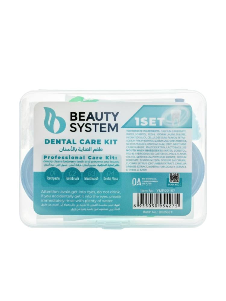 طقم عملي ومحمول مصمم لتوفير روتين عناية شامل بالفم والأسنان أثناء التنقل، مما يضمن لك نظافة وانتعاشًا فوريًا أينما كنت. إنه الحل المثالي للحفاظ على صحة الفم أثناء السفر أو في العمل أو بعد الوجبات.محتويات الطقم (8 قطع):علبة تخزين : علبة بلاستيكية صلبة لحفظ وتنظيم محتويات الطقم بشكل صحي وآمن.فرشاة أسنان (1) : فرشاة أسنان بتصميم محمول .معجون أسنان بحجم السفر (2): عبوتان فرديتان صغيرتان من معجون الأسنان للاستخدام لمرة واحدة.غسول فم بجرعات فردية (2): كبسولات أو عبوات بلاستيكية صغيرة تحتوي على غسول الفم.خيط أسنان (2-3): تحتوي الأغلفة الورقية لـ "macromolecule" على أدوات تنظيف إضافية خيط أسنان لتنظيف ما بين الأسنان.المزايا :قابلية التنقل الفائقة: حجم الطقم الصغير وتصميمه القابل للحمل يجعله مثاليًا للسفر، والتخييم، أو للاحتفاظ به في حقيبة اليد والعمل.عناية متكاملة: يوفر جميع الأدوات الأساسية (فرشاة، معجون، غسول فم) لروتين نظافة فموية كاملة ومناسبة لـ غسيل الفم والأسنان المتكامل.انتعاش فوري: جرعات غسول الفم والمعجون الفردية توفر انتعاشًا ونظافة فورية بعد الوجبات أو قبل الاجتماعات.تصميم صحي: تأتي جميع المكونات معبأة بشكل فردي، مما يضمن النظافة وعدم الهدر. طقم "بيوتي سيستم" للعناية بالأسنان هو رفيقك المثالي للحفاظ على صحة الفم ونظافة الأسنان في كل رحلاتك ويومياتك، بفضل تصميمه المدمج وسهل الاستخدام.