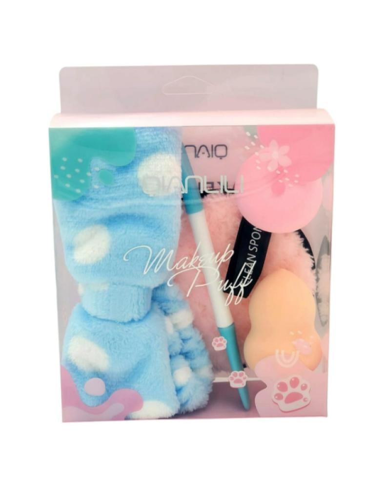 مجموعة اسفنجة مكياج مع ربطة شعر من بيوتي سيستم - 4قطع
