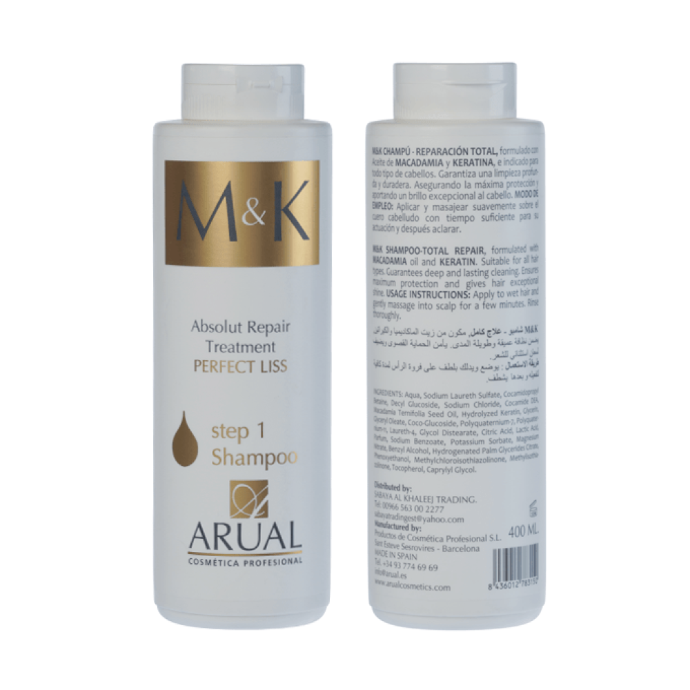 شامبو إم كي بالكيراتين.. نعومة فائقة وعناية احترافية!شامبو إم كي للعناية بالشعر التالف، تركيبة غنية بالكيراتين تقوّي خصلات الشعر، تحميها من التقصف، وتمنحها لمعانًا صحيًا يدوم.مميزات شامبو الكيراتين ارول إم اند كي:مكون من زيت الماكاديميا والكيراتين.يضمن نظافه عميقه وطويل المدى.يستعمل لكل انواع الشعر.يأمن الحمايه القصوى ويضيف لمعان استثنائي للشعر.يوضع ويدلك بلطف على فروة الراس لمدة كافيه لتفعيله وبعدها يشطف.دلّلي شعرك بتجربة فاخرة من العناية مع شامبو إم كي بالكيراتين!اطلبي الآن جميع منتجات إم اند كي الأسباني من متجر دار الأميرات أكبر تجمع في المملكة لمنتجات العناية والتجميل والصالون.منتجات قد تعجبك أيضًا:بلسم لإصلاح الشعر من ام اند كي - 400 ملفولاري - سيروم الشعر بالكيراتين والفحم - 50 ملمجموعة زيت الأرغان المغربي لاصلاح الشعر التالف من جاردن اوليان - 4 قطع