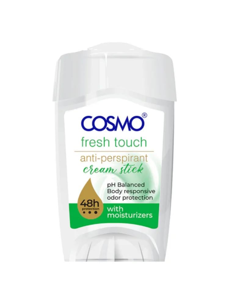 كوزمو فريش تاتش - مزيل عرق كريم ستيك للحماية والانتعاش! 🌿💙💚 حافظ على انتعاشك طوال اليوم مع كوزمو فريش تاتش! بتركيبته المتوازنة الحموضة (pH Balanced) ي...