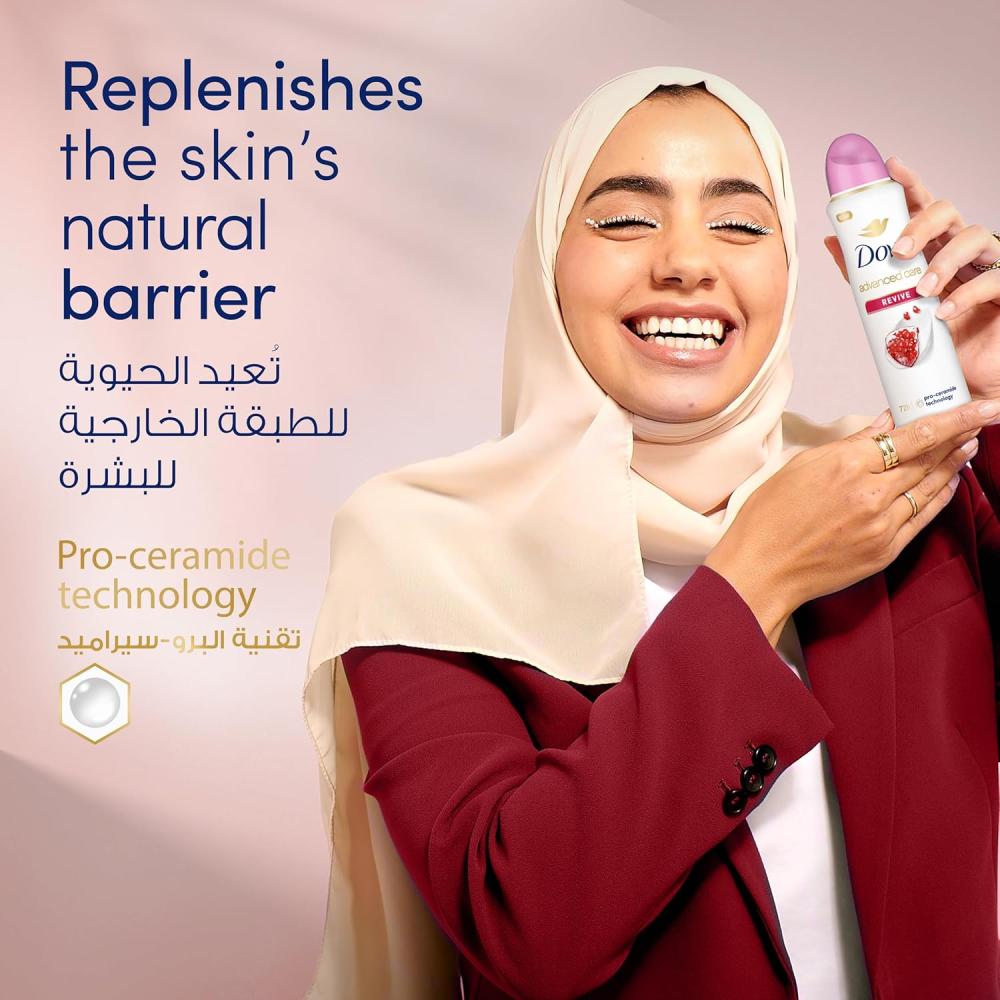 اختبري عناية فائقة ونعومة لا مثيل لها لبشرة الإبطين مع مزيل العرق دوف Revive!مزايا المنتج🌟 أطول حماية:يوفر حماية تدوم حتى 72 ساعة من التعرق والرائحة.🍃 عناية لطيفة للبشرة:غني بـ تقنية البرو-سيراميد لتعزيز حاجز البشرة وحمايتها.🍇 انتعاش برائحة الرمان:يتميز برائحة منعشة تدوم طويلاً، تعزز من شعورك بالنظافة والانتعاش.💧 ترطيب مكثف:يحتوي على 1/4 كريم مرطب لمنحك بشرة ناعمة وخالية من التهيج.فوائد إضافية✅ مناسب لجميع أنواع البشرة، حتى الحساسة.✅ لا يسبب التهيج أو الاسمرار.✅ يضفي إحساسًا بالثقة والانتعاش طوال اليوم.طريقة الاستخدامرجّي العبوة جيدًا قبل الاستخدام.رشي المنتج على بشرة نظيفة وجافة من مسافة 15 سم.استمتعي بحماية طويلة الأمد وبشرة ناعمة طوال اليوم!✨ دللي نفسك مع العناية الفائقة من دوف، لأنك تستحقين الأفضل! 💖