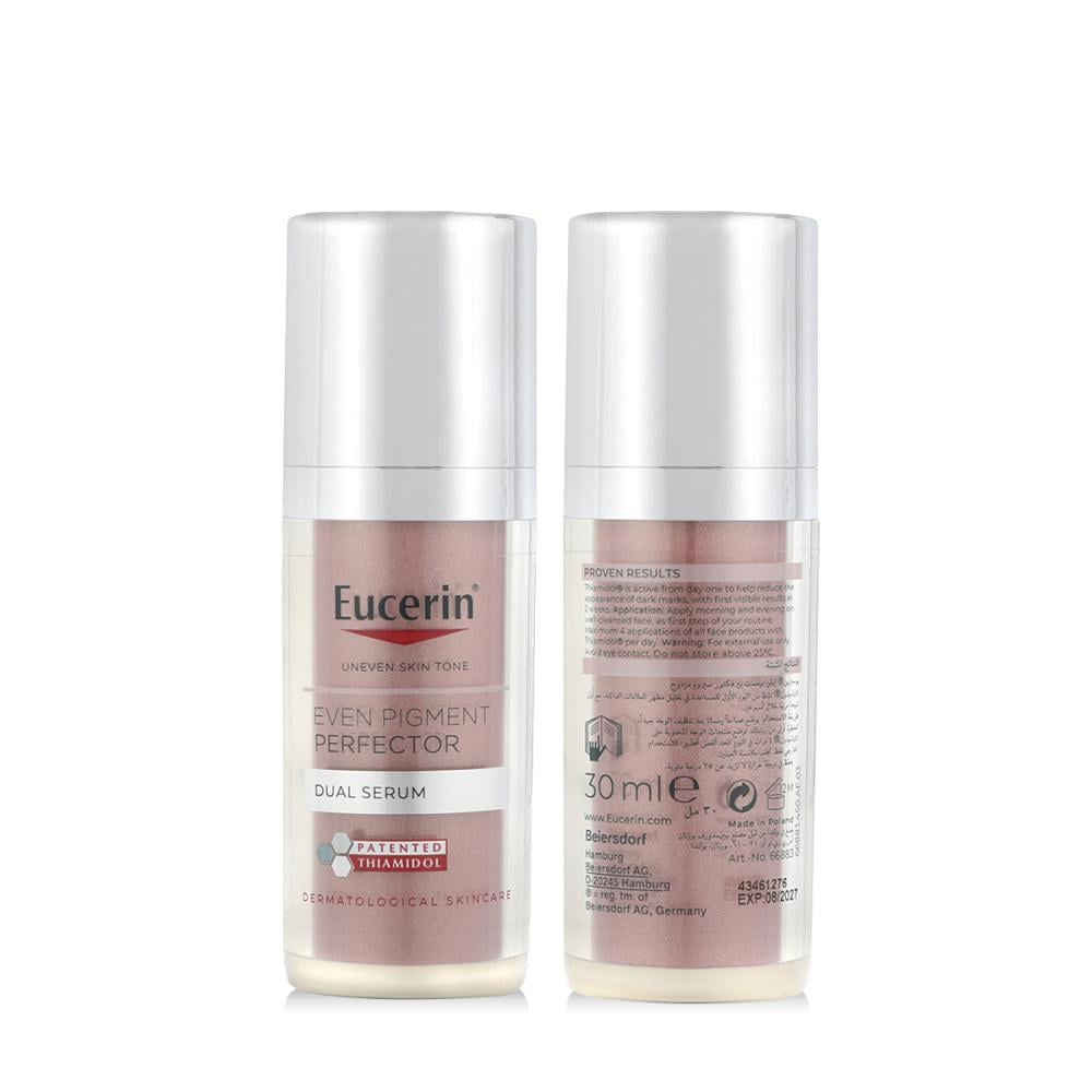 فعالية مزدوجة لبشرة متجانسة، مشرقة، وممتلئة بالترطيب.دلّلي بشرتك بعناية متقدمة مع السيروم الثنائي من يوسيرين، الذي يجمع بين مكونين فعّالين في تركيبة مبتكرة تستهدف البقع الداكنة وترطب البشرة بعمق. مصمم خصيصًا لمنحك بشرة أكثر توحيدًا ونضارة مع كل استخدام.المزايا:يحتوي على Thiamidol® الحاصل على براءة اختراع: يخفف من البقع الداكنة الحالية ويمنع ظهورها مجددًا عن طريق تثبيط إنتاج الميلانين.غني بـ حمض الهيالورونيك المركز: يعزز ترطيب البشرة بعمق ويمنحها امتلاءً وإشراقة طبيعية.نتائج ملحوظة من الأسبوع الثاني مع تحسن مستمر عند الاستخدام المنتظم.تركيبة مزدوجة فعّالة ومثبتة سريريًا من قبل أطباء الجلدية.يمنحك بشرة أكثر نعومة، تجانسًا، وإشراقًا.طريقة الاستخدام:استخدميه مرة واحدة يوميًا (صباحًا أو مساءً) على بشرة نظيفة تمامًا.اضغطي في منتصف رأس المضخة لتوزيع كمية متساوية من كلا السيرومين.في أول استخدام، قد تحتاجين إلى الضغط عدة مرات حتى يبدأ المنتج بالخروج.وزّعيه بلطف على الوجه والعنق ومنطقة أعلى الصدر.تجنّبي ملامسة العينين.اختاري السيروم الثنائي من يوسيرين للعناية الفائقة ببشرتك – لأن إشراقتك تبدأ من عمق العناية