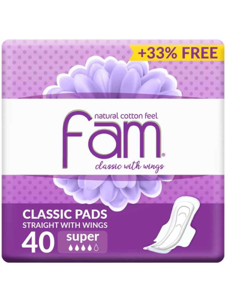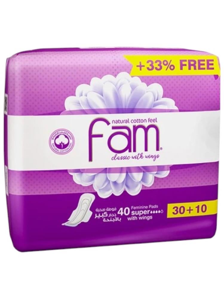 اكتشفي الراحة والحماية المثالية مع فوط فام كلاسيك سوبر حجم كبير بالأجنحة – حلّ مثالي ليومك المزدحم وليلتك الهادئة.المميزات والفوائد:امتصاص فائق: يحميك طوال اليوم من تدفق الطمث أو الإفرازات.راحة ونعومة: طبقة قطنية لطيفة على البشرة الحساسة.تحكم بالروائح: تمنحك شعورًا بالانتعاش طوال اليوم.ثبات ممتاز: تبقى في مكانها دون انزلاق.عبوة عملية: 40 فوطة مغلّفة فرديًا لضمان الاستخدام النظيّف والسهل. اختاري فام كلاسيك سوبر لتجربة حماية يومية مريحة وآمنة، تمنحك راحة وثقة في كل لحظة.