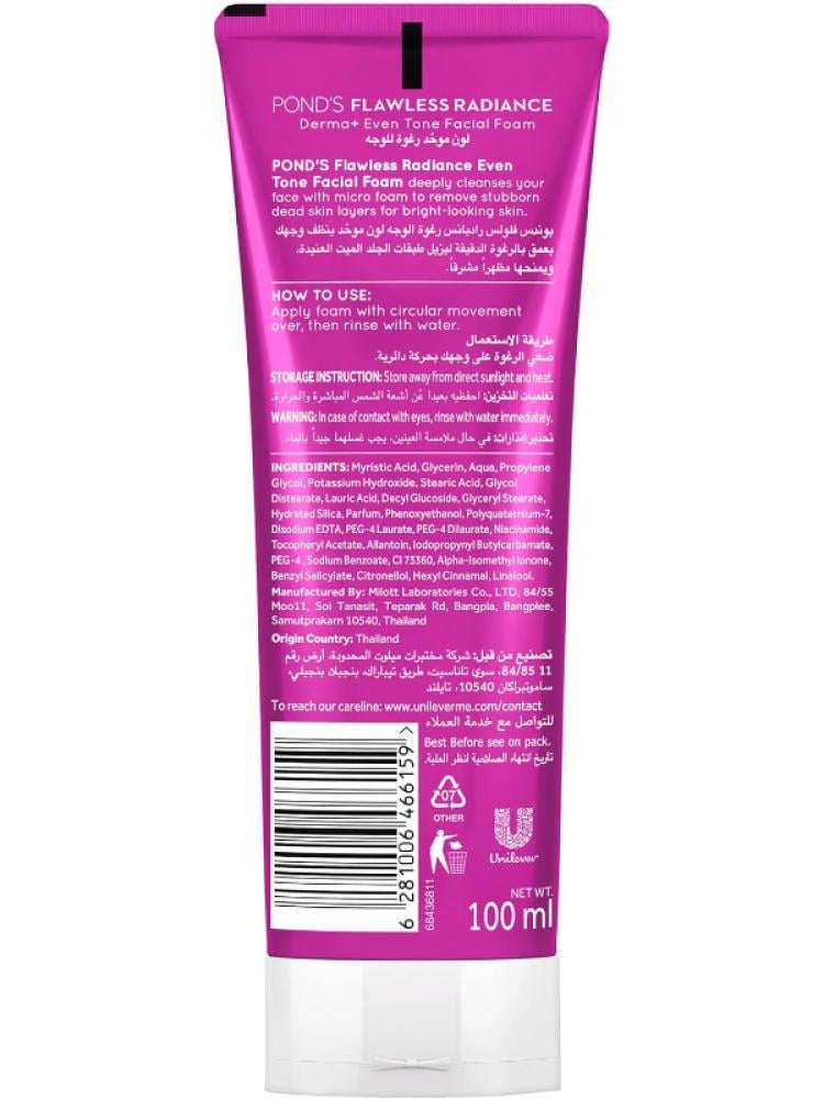 اكتشفي إشراقة نقية ومتجددة لبشرتك مع رغوة تنظيف وتقشير فلولس راديانس من بوندس!المكونات الأساسية:حمض الميريستيك وحمض البالمتيك والستيريك واللوريك: تساعد في تنظيف البشرة بفعالية دون تجفيفهاحبيبات تقشير دقيقة: تعمل على إزالة خلايا الجلد الميتة بلطف لتحسين مظهر البشرةنياسيناميد (فيتامين B3): لتفتيح وتوحيد لون البشرةجلسرين: يرطب البشرة ويمنع جفافهاألانطوين: يهدئ البشرة ويحافظ على نعومتهاالمميزات والفوائد:تنظيف عميق يزيل الأوساخ والشوائب بفعاليةتقشير لطيف يحفز تجدد خلايا البشرة ويكشف عن بشرة أكثر إشراقًايساهم في توحيد لون البشرة وتحسين نضارتهايرطب البشرة ويحافظ على توازنها الطبيعييمنحك نتائج ملحوظة في غضون 7 أيام فقططريقة الاستخدام:بللي وجهك جيدًا بالماء، ثم اضغطي على العبوة للحصول على كمية بحجم حبة البازلاء.افركي المنتج بين يديك لتكوين رغوة ناعمة، ودلّكيها بلطف على وجهك بحركات دائرية.اشطفي وجهك بالماء الفاتر، وكرري الاستخدام مرتين يوميًا صباحًا ومساءً للحصول على أفضل النتائج.امنحي بشرتك تجربة تنظيف وتقشير متكاملة مع رغوة تنظيف الوجه وتقشيره فلولس راديانس من بوندس، لتحصلي على بشرة نقية، مشرقة ومتوهجة تعكس جمالك الطبيعي كل يوم.