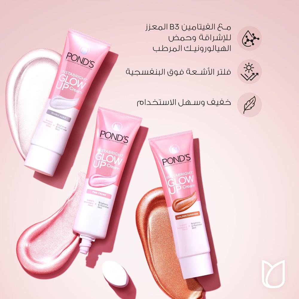 إشراقة وردية فورية تضفي الحيوية على بشرتك!امنحي بشرتك توهجًا ناعمًا ولمسة وردية مشرقة مع كريم جلو أب لمسة وردية من بوندس، الحل المثالي للحصول على إشرا...