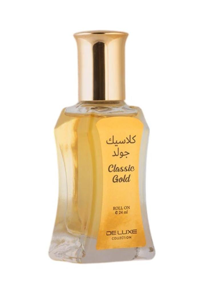 عطر كلاسيك جولد رول أون (24 مل) يقدم مزيجًا فاخرًا من العنبر الدافئ والنفحات الخشبية الغنية، ليمنحك رائحةً خالدة وأنيقة. مثالي للرجال والنساء، بفضل سه...