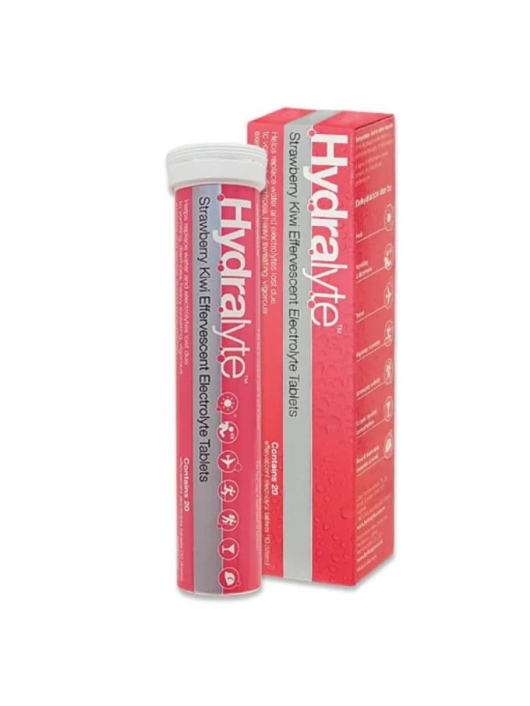 أقراص فوّارة تهدف إلى تعويض السوائل والشوارد (الإلكتروليتات) بسرعة—مع محتوى منخفض من السكر (حوالي 3 غ لكل 200 مل ماء)، خالية من الغلوتين والألوان الصناعية ومصممة وفقًا لمعايير منظمة الصحة العالمية لإعادة الترطيب الفوري .المزايا:ترطيب سريع وفعّال: يجمع بين الصوديوم والجلوكوز في النسبة المثالية لامتصاص الماء بسرعة عبر النقل: "sodium–glucose pump" .تعويض الإلكتروليتات: يحتوي على الصوديوم والبوتاسيوم والبيكربونات لدعم التوازن المائي أثناء الجفاف الناتج عن الإسهال، القيء، التعرّق الزائد أو الكحولقليل السكر والسعرات: حوالي 3 غ سكر و20 سعرة حرارية فقط لكل 200 مل، دون ألوان أو مواد حافظةسهل الاستخدام ومحمول: عبوة صغيرة تحتوي على 20 قرصًا، مثالية للسفر، الرياضة أو الاستخدام المنزلي.طريقة الاستخدام:قم بإذابة قرصين في 200 مل ماء بارد.اشرب المحلول ببطء خلال فترة الجفاف.يجب التخلص من أي محلول غير مستخدم بعد مرور ساعتين بدرجة حرارة الغرفة أو 24 ساعة في الثلاجةيتبع جدول الجرعات حسب العمر والشدة (راجع تعليمات الاستخدام للرضع والأطفال)تحذيرات واحتياطات:لا تؤخذ في حال تم فتح ختم العبوة .استشر الطبيب إذا كان هناك أمراض كلى أو القلب أو ضغط الدم بسبب ملح الصوديوم والبوتاسيوم .لا تبلُع الأقراص مباشرة—يجب إذابتها فقط .توقف واستشر طبيبًا إن استمر القيء أو الإسهال أكثر من المحدد بالعمر .الخاتمة:أقراص هيدرالايت بنكهة الفراولة والكيوي هي حل عملي وسريع لتعويض السوائل والشوارد، مثالية لمختلف حالات الجفاف—من التجمع الرياضي إلى الوقاية من الجفاف في الطقس الحار أو بعد الإصابة بإسهال أو قيء. خفيفة وسريعة التحضير، وتدعم التوازن الصحي للماء في جسمك.