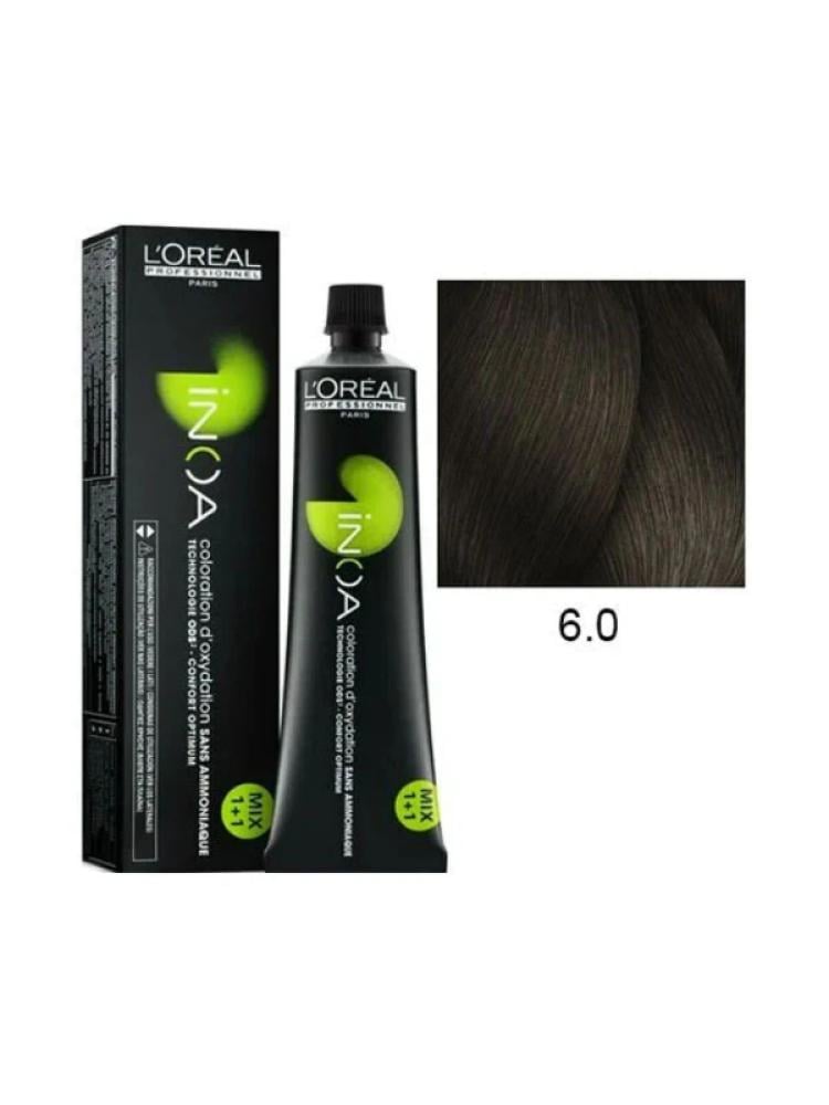 تمتعي بلون شعر طبيعي وغني مع إنوا 6.0 من لوريال بروفيشنال. درجة أشقر غامق تمنح شعرك لونًا متجانسًا، بلمعان طبيعي وتأثير صحي يدوم طويلاً. بفضل تقنية بدون أمونيا، تحافظ إنوا على صحة فروة الرأس ورطوبة الشعر أثناء التلوين.مميزات وفوائد إنوا 6.0لون أشقر غامق طبيعي أنيق يناسب مختلف ألوان البشرة.تركيبة خالية من الأمونيا لحماية الشعر وفروة الرأس.تغطية مثالية للشيب بنسبة تصل حتى 100%.يمنح الشعر لمعانًا صحيًا يدوم طويلاً.يحافظ على نعومة الشعر بفضل زيوت إنوا المرطبة.طريقة الاستخدامامزجي الصبغة مع الأكسجين بنسبة 1:1 (60 جم صبغة + 60 مل أوكسجين).وزعي الخليط بالتساوي على الشعر الجاف غير المغسول.اتركيه لمدة 35 دقيقة.اشطفي الشعر جيدًا ثم استخدمي شامبو وبلسم للعناية بالشعر المصبوغ.معلومات المنتجالحجم: 60 جمالمجموعة: Inoaالنوع: صبغة دائمة خالية من الأمونياالدرجة: 6.0 (أشقر غامق)مع إنوا 6.0 من لوريال بروفيشنال، استمتعي بلون أنيق مع حماية فائقة لشعرك وفروة رأسك