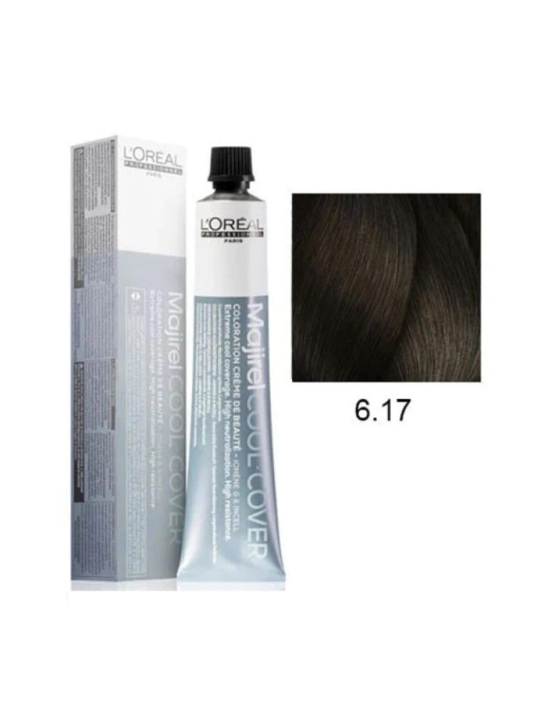امنحي شعرك لونًا غنيًا مع تغطية استثنائية للشيب بفضل ماجيريل كول كوفر 6.17 من لوريال بروفيشنال. تركيبة احترافية بلون أشقر داكن مطفي رمادي تمنحك مظهرًا أنيقًا عصريًا بلمسة باردة، مع حماية فائقة للشعر أثناء عملية التلوين. مميزات وفوائد ماجيريل كول كوفر 6.17تغطية مثالية للشعر الأبيض بنسبة تصل إلى 100%.لون بارد مطفي مع لمسة رمادية تمنحك إطلالة عصرية.ثبات طويل ولمعان طبيعي يدوم بعد الصبغ.تركيبة غنية تعتني بالشعر وتمنع جفافه أثناء التلوين.مثالية لمن يرغبن في التخلص من الدرجات الدافئة غير المرغوبة. طريقة الاستخدامامزجي الصبغة مع الأكسجين المناسب (حسب الدرجة المطلوبة).وزعي المزيج بالتساوي على الشعر الجاف غير المغسول.اتركيه لمدة 35 دقيقة ثم اشطفي جيدًا.استخدمي شامبو وبلسم مخصص للشعر المصبوغ للحفاظ على اللون. معلومات المنتجالحجم: 50 ملالنوع: صبغة دائمة احترافيةالمجموعة: Majirel Cool Cover مع لوريال ماجيريل كول كوفر 6.17 ستستمتعين بلون أنيق، تغطية مثالية، ولمعان يدوم طويلًا