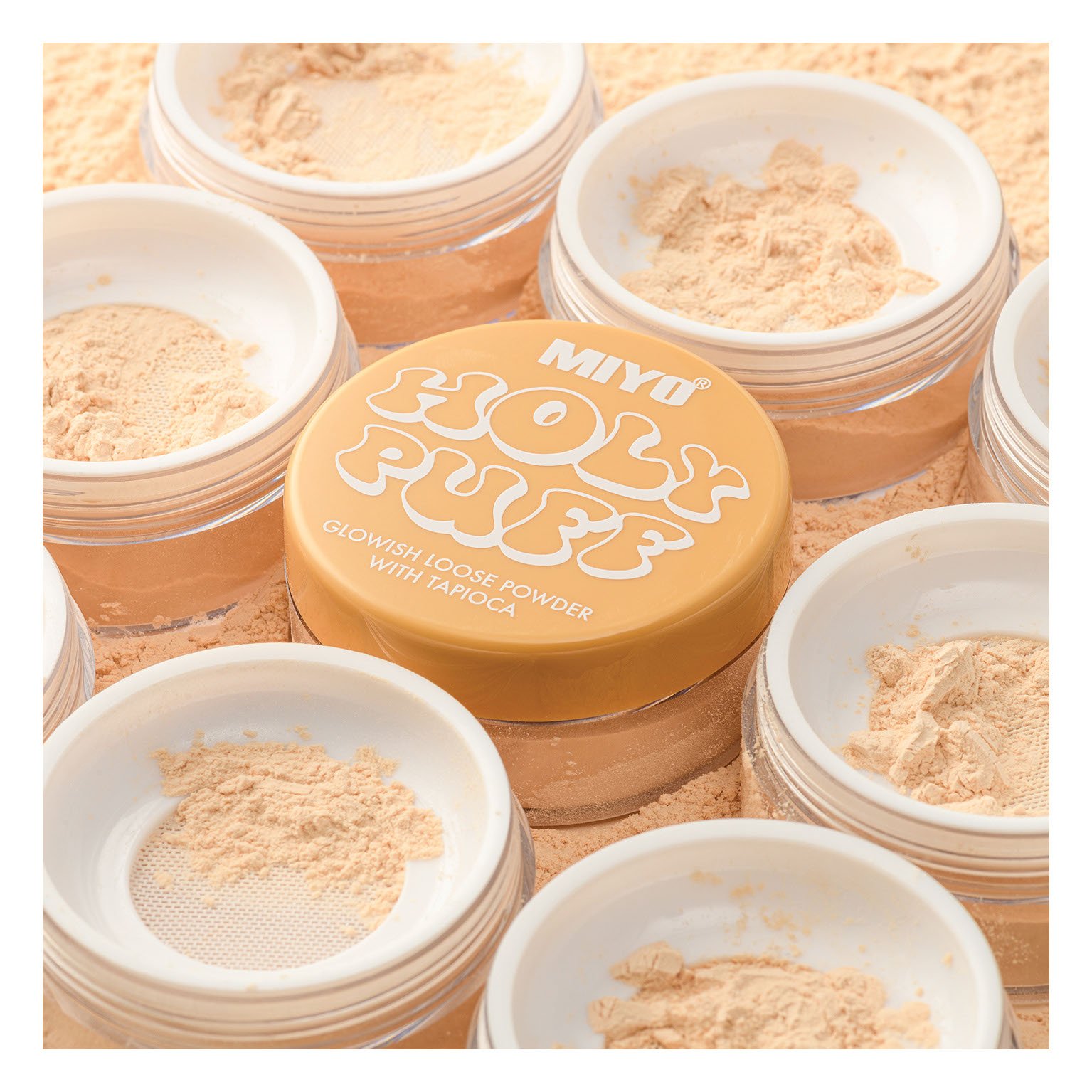 أضيفي لمسة من الإشراقة والفخامة إلى مكياجك مع بودرة التثبيت اللامعة HOLY PUFF من ميو . بفضل تركيبتها الناعمة، تثبت المكياج لساعات طويلة وتمنح البشرة ت...