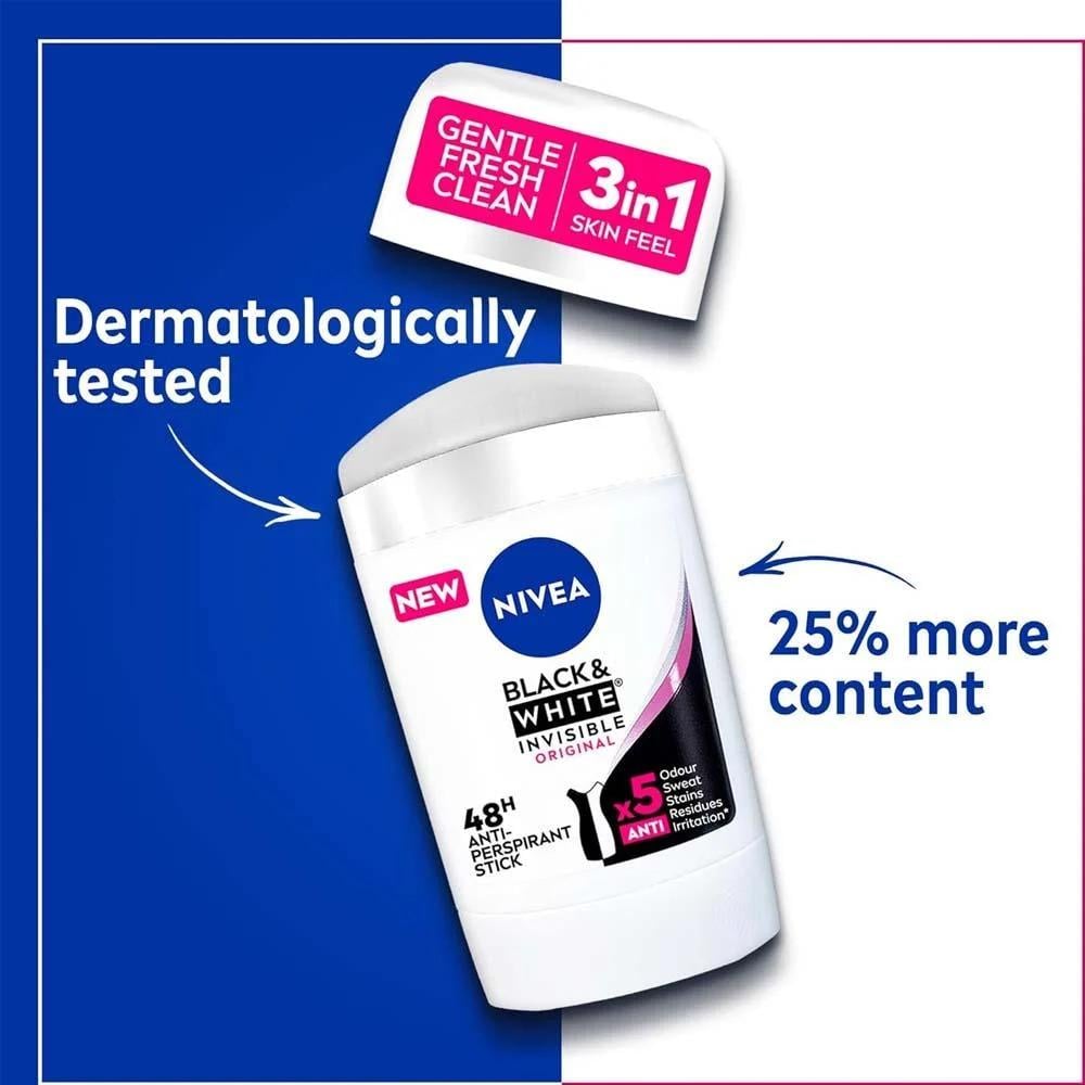 مزيل عرق ستيك بلاك اند وايت انفيزيبل اوريجينال للنساء من نيفيا - 50 مل