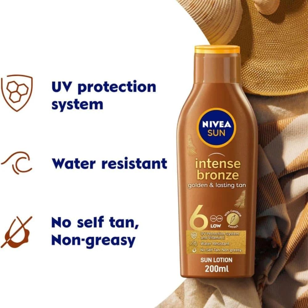استمتع بلون برونزي ذهبي يدوم طويلاً مع لوشن التسمير من نيفيا، المصمم خصيصًا ليمنحك تسميرًا طبيعيًا وجذابًا مع عناية فائقة بالبشرة. المميزات و الف...