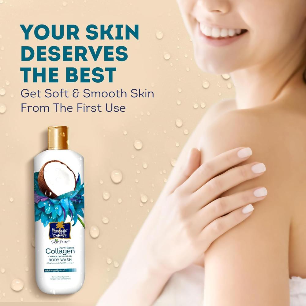 استعيدي شباب بشرتك يوميًا مع غسول الجسم سكين بيور بالكولاجين وزيت جوز الهند البكر من باراشوت!المميزات والفوائد:تعزيز المرونة: الكولاجين يساعد على تحسي...