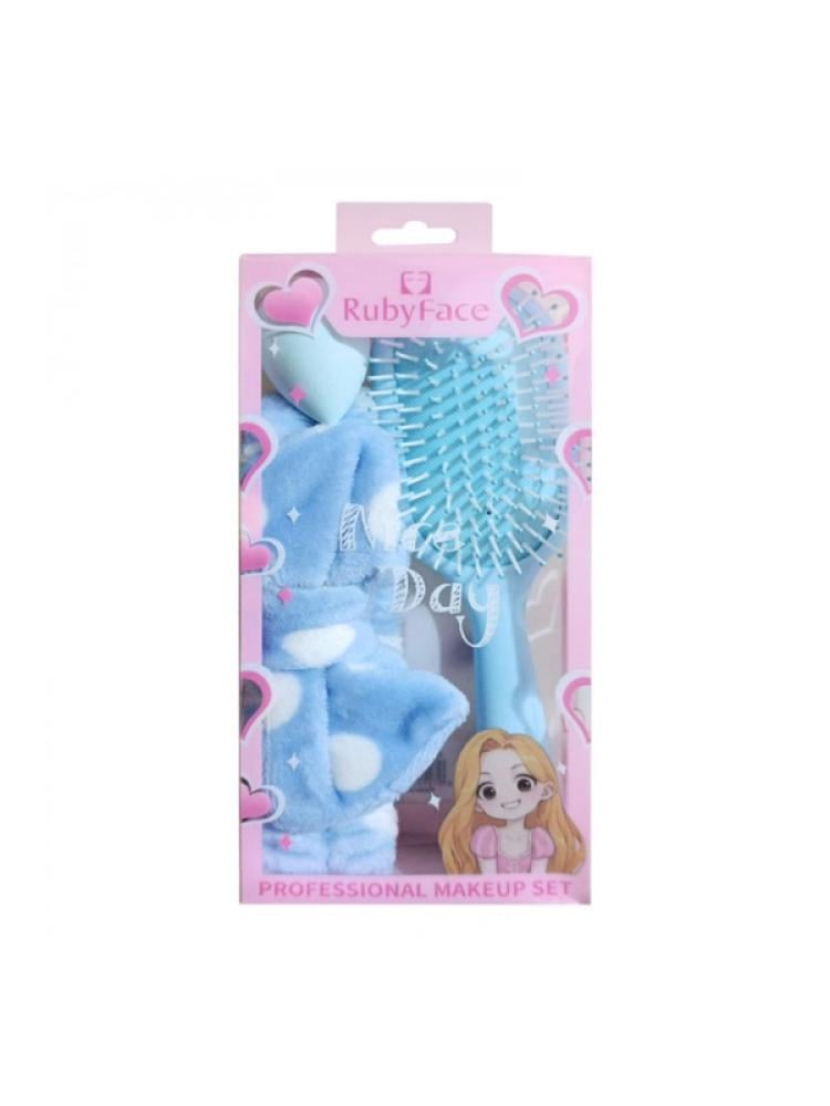 مجموعة عناية شخصية مرحة ومناسبة للفتيات، تأتي في عبوة وردية جذابة.مكونات المجموعة:فرشاة شعر احترافية: فرشاة تدليك أو فك تشابك بتصميم بلاستيكي بلون أزرق فاتح ، تتميز بشعيرات مرنة لتمشيط الشعر بلطف.ربطة الرأس: ربطة رأس ناعمة وفروية: بتصميم عقدة ولون ازرق فاتح ومنقوشة بنمط الفهد/القلوب باللون الابيض, وتُستخدم عادة لربط الشعر أثناء تطبيق العناية بالبشرة أو المكياج..إسفنجة مكياج : لتطبيق وتوزيع المكياج علي الوجه بدقة.المزايا:لون جذاب: تأتي بألوان متنوعة و جميلة.حمل مريح: سهلة الحمل والتعليق.مثالية للسفر: حجمها مناسب وتناسب حقائب السفر الكبيرة أو حقائب اليد.التغليف: تأتي في صندوق جذاب مُصمم كـ مجموعة مكياج احترافية، مما يجعلها خياراً جيداً كهدية.