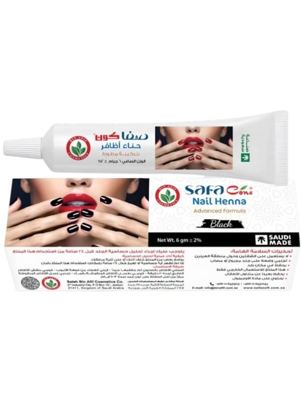 حناء أظافر من صفا كون مصممة خصيصًا لتلوين الأظافر بلون أسود أنيق وجذاب. تتميز بتركيبة سهلة الاستخدام تساعد على إعطاء الأظافر مظهرًا جميلًا وطبيعيًا.