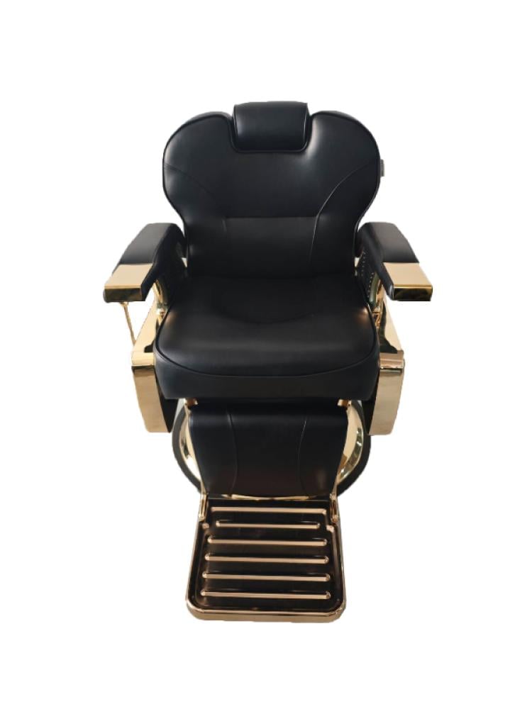 كرسي حلاقة رجالي فاخر يتميز بتصميم يمزج بين الجلد الأسود الكلاسيكي واللمسات الذهبية العصرية والملفتة للنظر. إنه كرسي مصمم ليكون قطعة مركزية في ا...