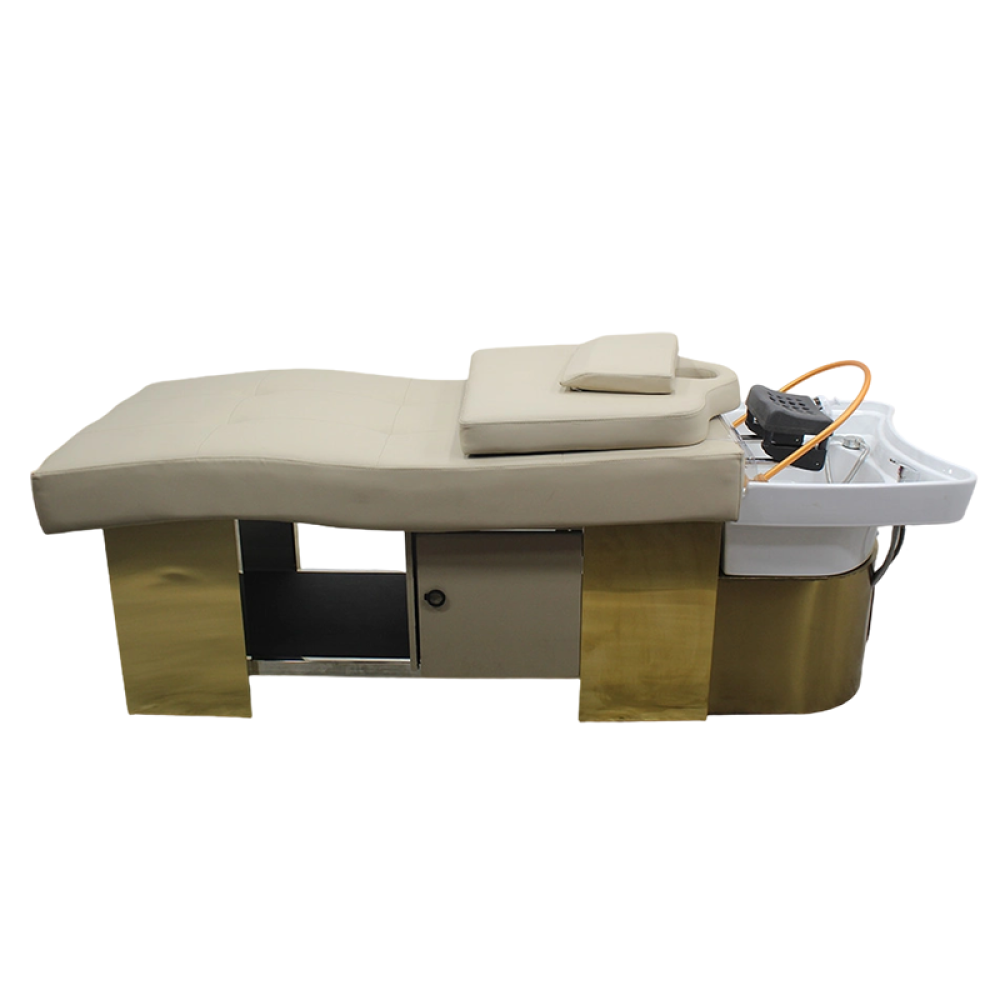 سرير مساج مع حوض شاور غسيل الشعر متصل سراميك لون بيج من صالون سيستم - موديل C230G