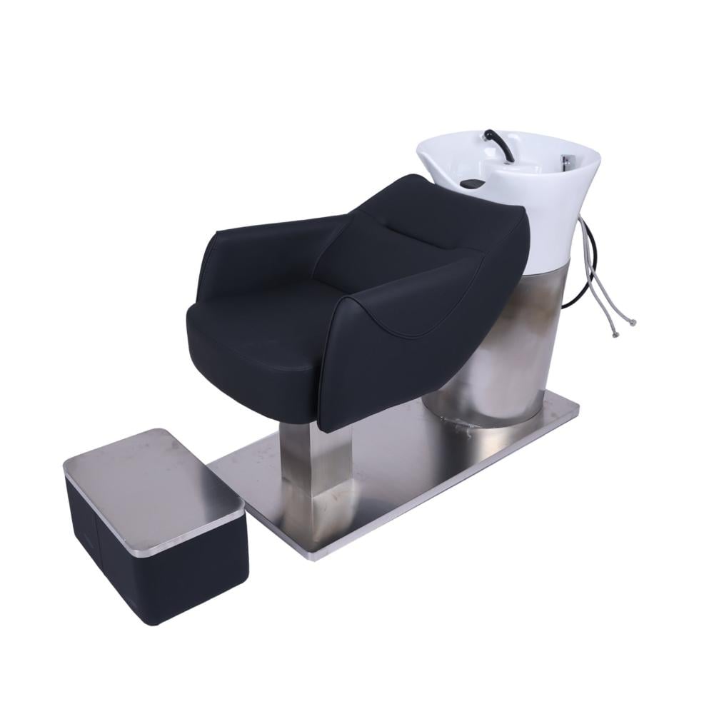 • مسند قدمين مدمج: الميزة الأبرز التي توفر دعماً كاملاً للجسم وتضمن استرخاءً عميقاً للعميلة أثناء غسيل الشعر.