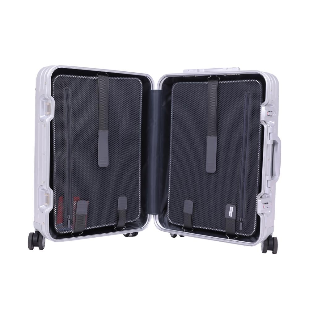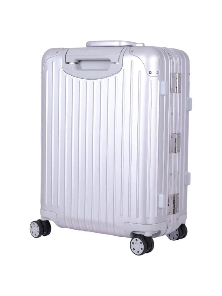 ابدأ رحلتك بأسلوب يعكس ذوقك الرفيع مع حقيبة السفر السلفر المخططة من صالون سيستم — مزيج مثالي من الفخامة، المتانة، وسهولة التنقل، صُممت خصيصًا لترافق المسافر العصري أينما ذهب.المواصفات:اللون: سلفر لامع بخطوط طولية أنيقة.الأبعاد: ارتفاع 54 سم، عرض 36 سم، عمق 21 سم.المادة: هيكل صلب ومتين، يضمن الحماية القصوى لمحتوياتك.العجلات: أربع عجلات مزدوجة دوارة 360 درجة، توفر انسيابية فائقة في الحركة.المقابض: مقبض سحب تلسكوبي قابل للتعديل لتناسب طولك، ومقابض حمل علوية وجانبية لسهولة الرفع.الإغلاق: مزودة بقفل مدمج لتعزيز الأمان.التصميم الداخلي: مبطن بالكامل مع أحزمة تثبيت متقاطعة للحفاظ على الملابس مرتبة، وجيوب شبكية بسحاب لتنظيم المستلزمات الصغيرة.المزايا والفوائد:انسيابية في التنقل: مزودة بأربع عجلات مزدوجة تدور 360 درجة، تتيح حركة سلسة في جميع الاتجاهات لراحة أكبر أثناء السفر.متانة وحماية فائقة: هيكل صلب مقاوم للصدمات والضغط، يحافظ على مقتنياتك بأمان طوال الرحلة.تنظيم فعال: تصميم داخلي مبطن مزوّد بأحزمة تثبيت وجيوب بسحاب، يسهل ترتيب الأغراض والاستفادة القصوى من المساحة.حجم مثالي : أبعاد مناسبة لحقائب المقصورة على أغلب رحلات الطيران، لتجنب انتظار الحقائب المشحونة.تصميم فاخر وجذاب: اللون السلفر المخطط يضفي لمسة أنيقة وعصرية، لتتميّز بمظهر راقٍ في كل تنقلاتك.اختتم رحلاتك بتجربة لا تضاهى من الراحة والأناقة مع حقيبة سفر صالون سيستم السلفر المخططة، شريكك الأمثل لأسفار لا تُنسى.