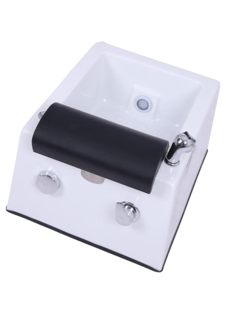 • تصميم يجمع بين الأناقة والراحة: بلونه الأبيض النقي وتكايته السوداء المريحة، يضيف هذا الحوض لمسة عصرية واحترافية لديكور صالونك، مما يعزز من تجربة العميل البصرية والمادية.