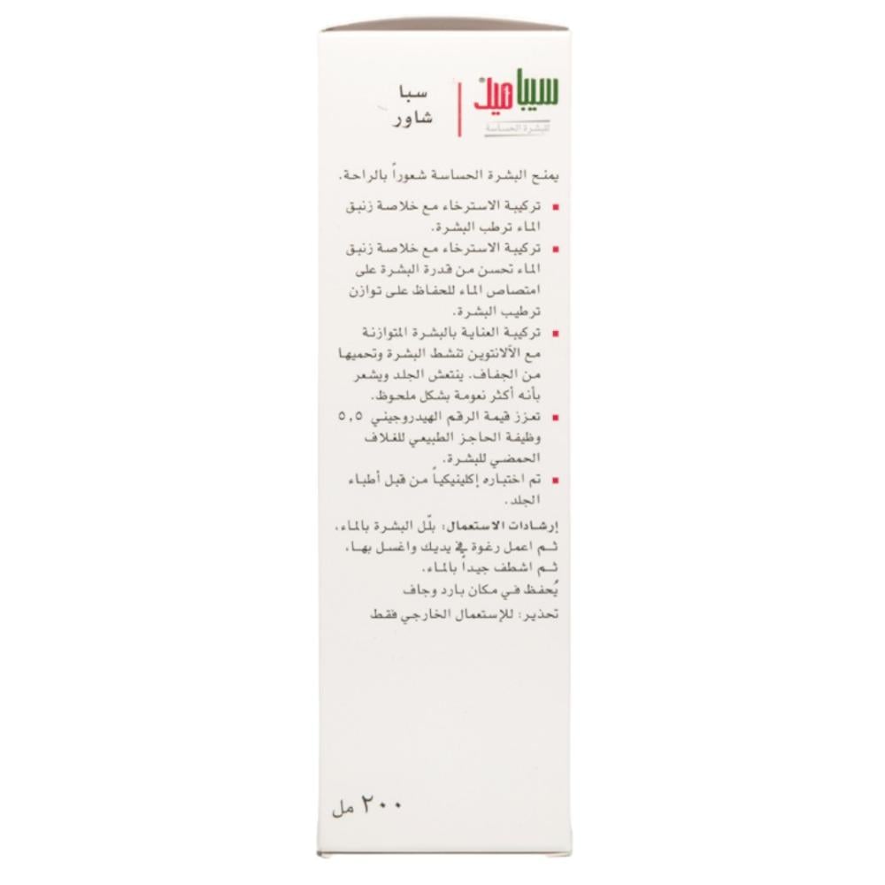 امنحي بشرتك الحساسة تجربة استحمام لطيفة ومريحة مع سائل سبا شاور من سيباميد، المصمم لتهدئة البشرة وترطيبها بعمق أثناء التنظيف اليومي.المميزات والفوائد:راحة فورية للبشرة الحساسة: يمنح البشرة شعورًا بالهدوء والراحة أثناء الاستحمام.ترطيب عميق ومتوازن: تركيبة مع خلاصة زنبق الماء تحسن قدرة البشرة على امتصاص الماء للحفاظ على توازن الترطيب الطبيعي.تنشيط وحماية البشرة: الآلانتوين ينعش الجلد ويحميه من الجفاف، ويترك البشرة ناعمة بشكل ملحوظ.دعم الحاجز الطبيعي للبشرة: الرقم الهيدروجيني المتوازن 5.5 يعزز وظيفة الغلاف الحمضي للبشرة ويحافظ على صحتها.آمن ومختبر إكلينيكيًا: تم اختباره من قبل أطباء الجلد للتأكد من ملاءمته للبشرة الحساسة.الحجم: 200 مل - يوفر استخدامًا يوميًا طويل الأمد للبشرة الحساسة.طريقة الاستخدام:بلّل البشرة بالماء.شكّل رغوة خفيفة في يديك واغسل بها الجسم.اشطف جيدًا بالماء. تحذير: للاستعمال الخارجي فقط، ويحفظ في مكان بارد وجاف. استمتعي ببشرة نظيفة، مرطبة وناعمة مع سائل استحمام سبا شاور من سيباميد – الحل المثالي للبشرة الحساسة في روتين الاستحمام اليومي.