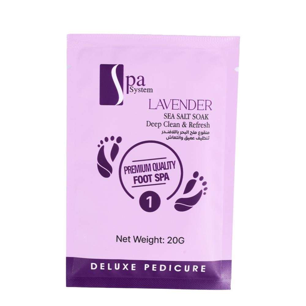 - منقوع ملح البحر (20 جرام ) : يساعد في تهدئة القدمين وتنظيفهما بعمق، مع رائحة اللافندر التي تضفي إحساسًا بالاسترخاء.
