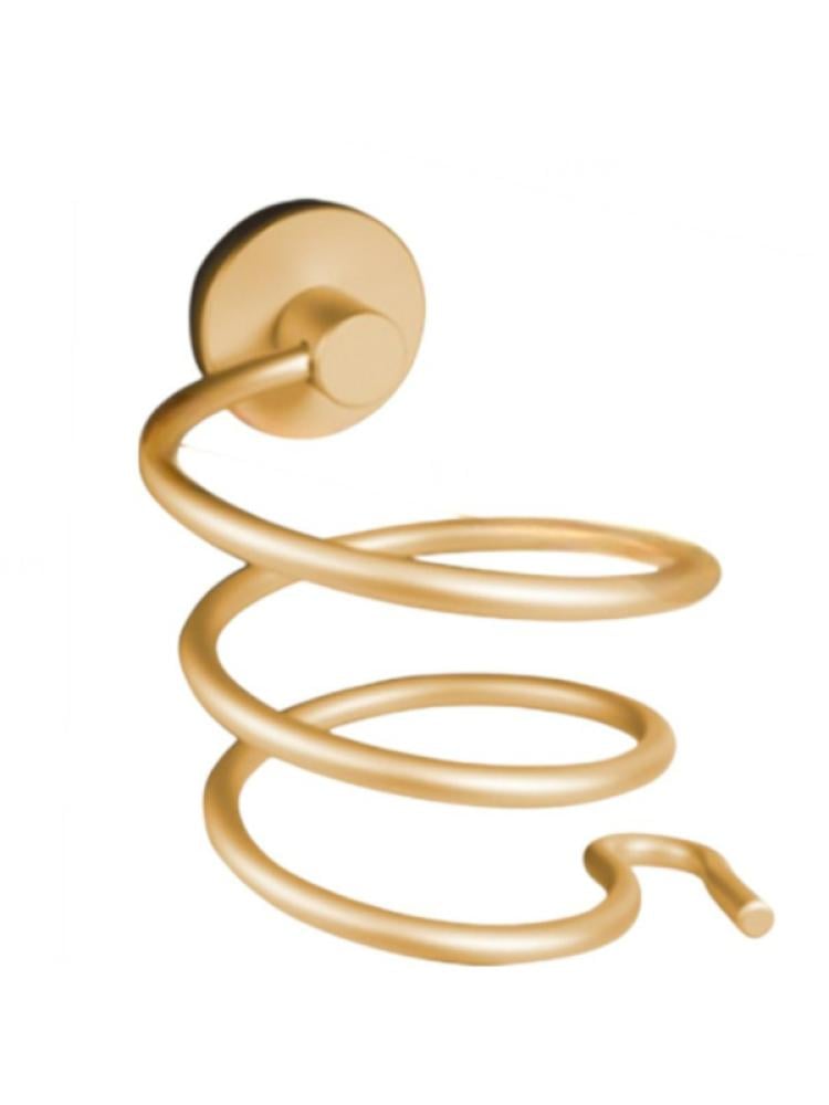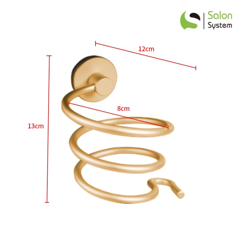 أضف لمسة من الأناقة والتنظيم إلى صالونك مع حامل استشوار جداري حلزوني من صالون سيستم. تصميم عصري باللون الذهبي لتثبيت مجفف الشعر بشكل آمن ومرتب مع توف...