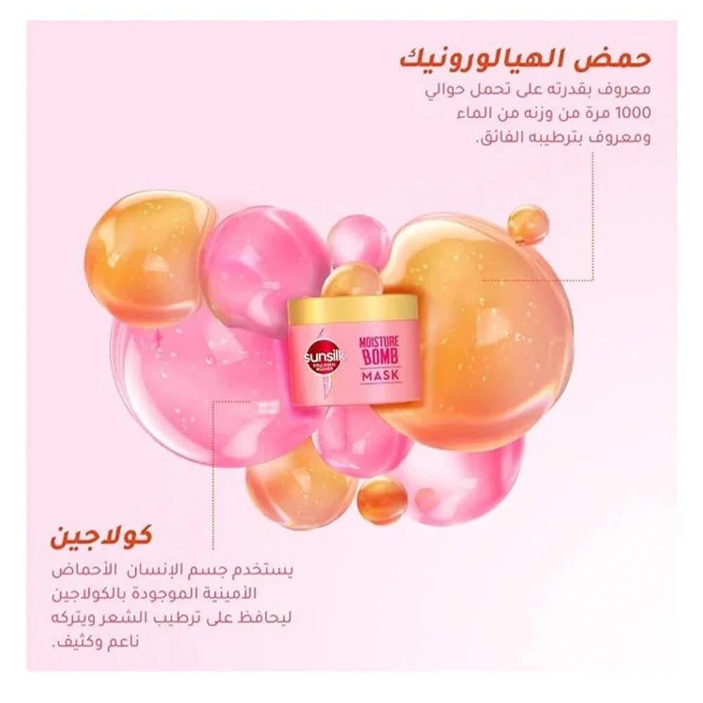امنحي شعرك جرعة فورية من الترطيب والانسيابية مع ماسك Sunsilk Moisture Bomb الغني بخلاصة المكونات المرطبة التي تعيد الحيوية والنعومة للشعر الجاف والتال...