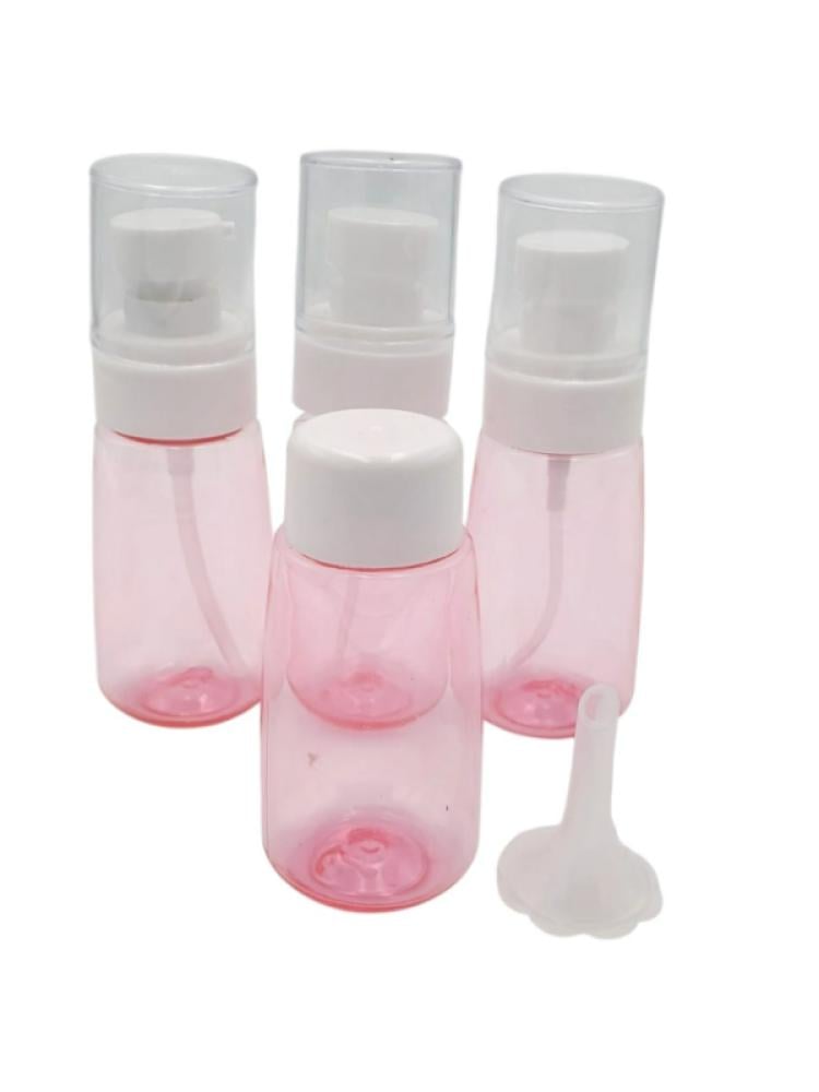 سافري بأناقة وراحة مع مجموعة العبوات البلاستيكية العملية ذات التصميم الأنيق باللون الوردي، المثالية لحفظ المستحضرات السائلة مثل العطور، المعقمات، التو...