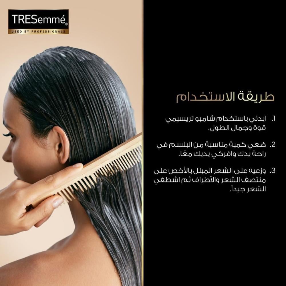 بلسم تريسيمي قوة وتحكم بالتساقط مُصمم خصيصًا لتقوية شعرك. من الممكن أن يترك التصفيف اليومي أثرًا مدمرًا على شعرك وخاصة لأن درجات الحرارة في أجهزة التصفيف قد تصل إلى 230 درجة مئوية! وتعمل مجموعة شامبو وبلسم قوة وتحكم بالتساقط بقوة البيوتين على تغذية شعرك من الجذور وحتى الأطراف وتساعد على إعادة بناء ألياف الشعر وتقويتها. والنتيجة شعر أقوى بثلاث مرات وتناقص واضح في تساقط الشعر